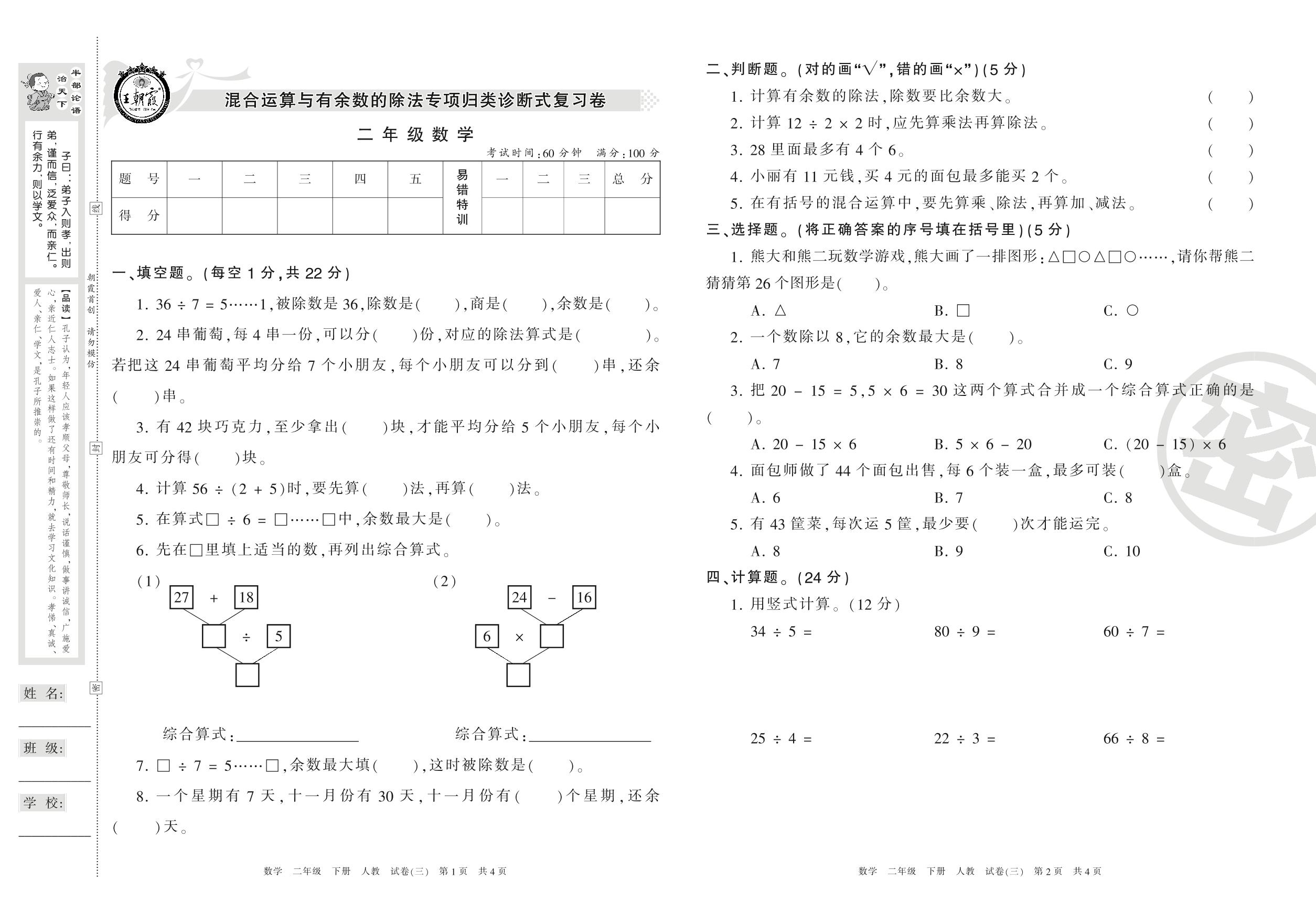 王朝霞期末专项卷二年级下册数学(人教版)_R210803101142【3】