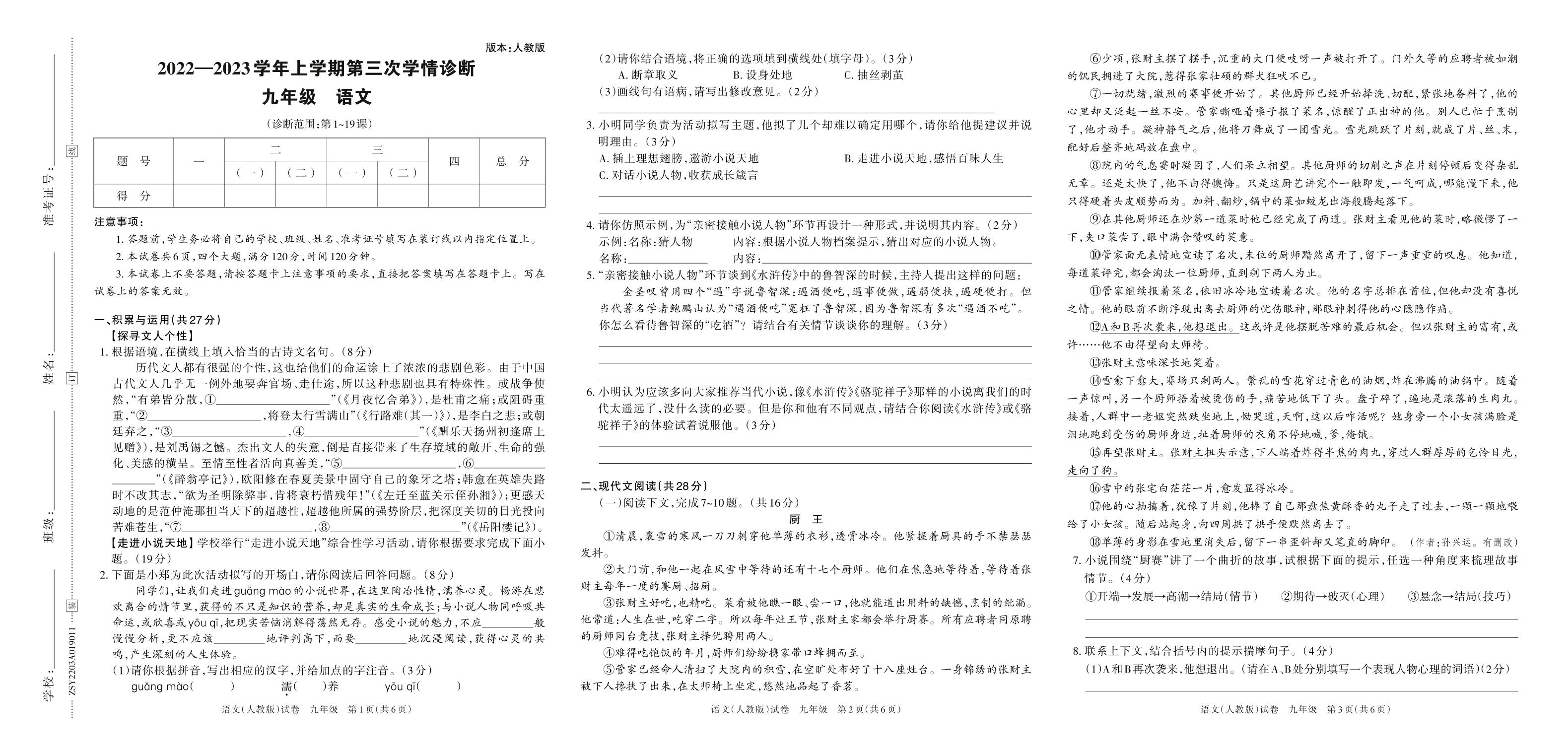 2022—2023学年上学期第三次学情诊断九年级语文(人教版)_R231012111041758