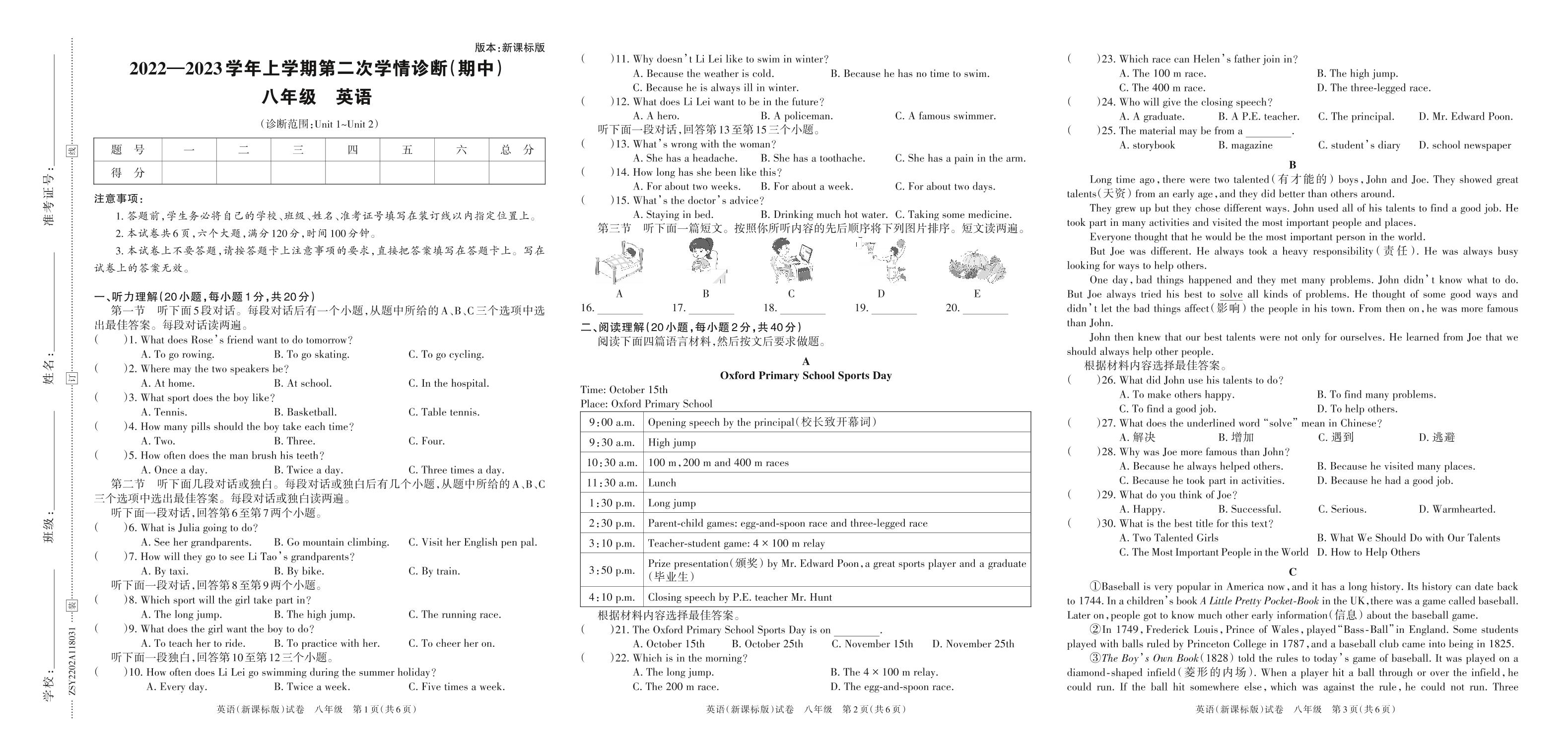 2022—2023学年上学期第二次学情诊断(期中)八年级英语(新课标版)