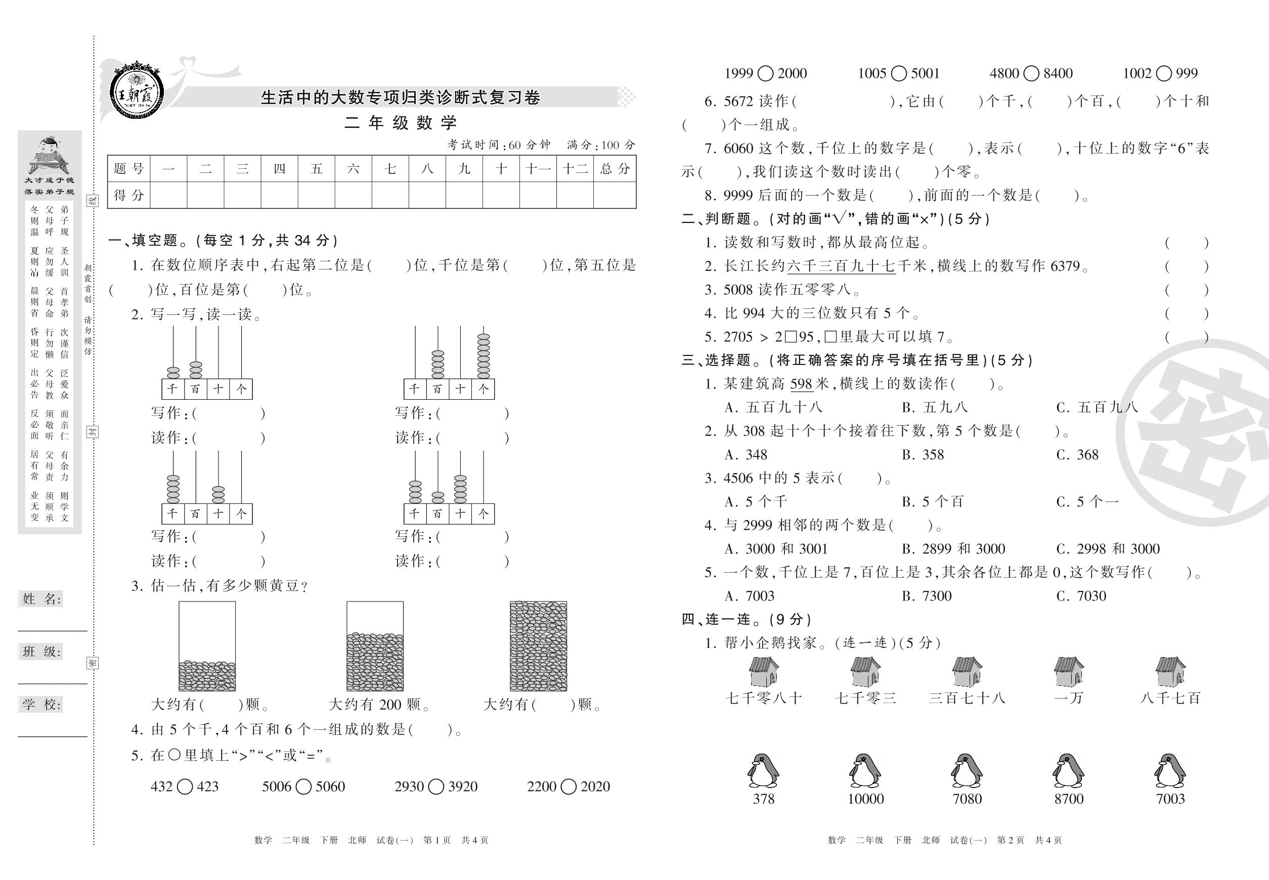 王朝霞期末专项卷二年级下册数学(北师版)_R210803101308【1】