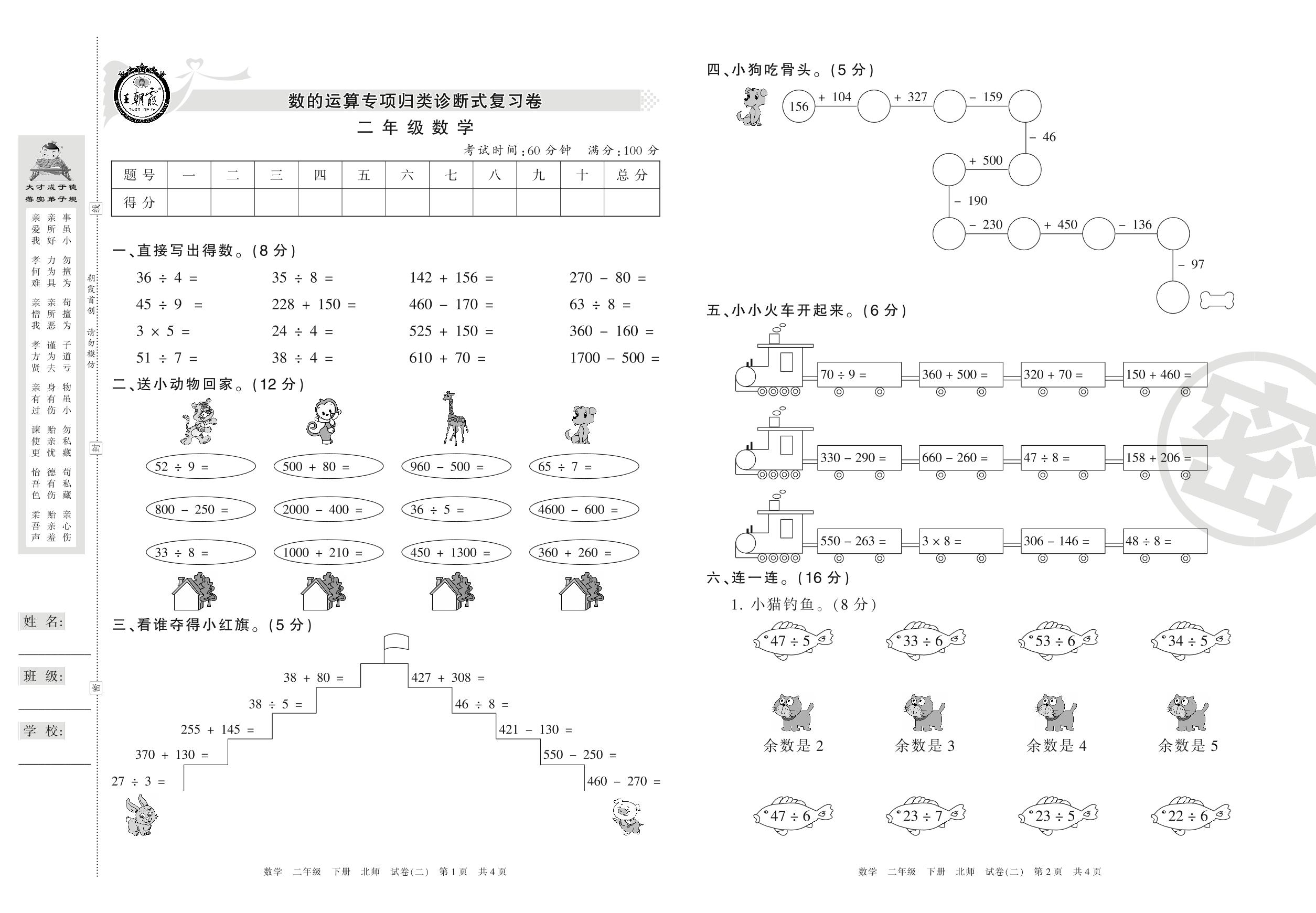 王朝霞期末专项卷二年级下册数学(北师版)_R210803101316【2】