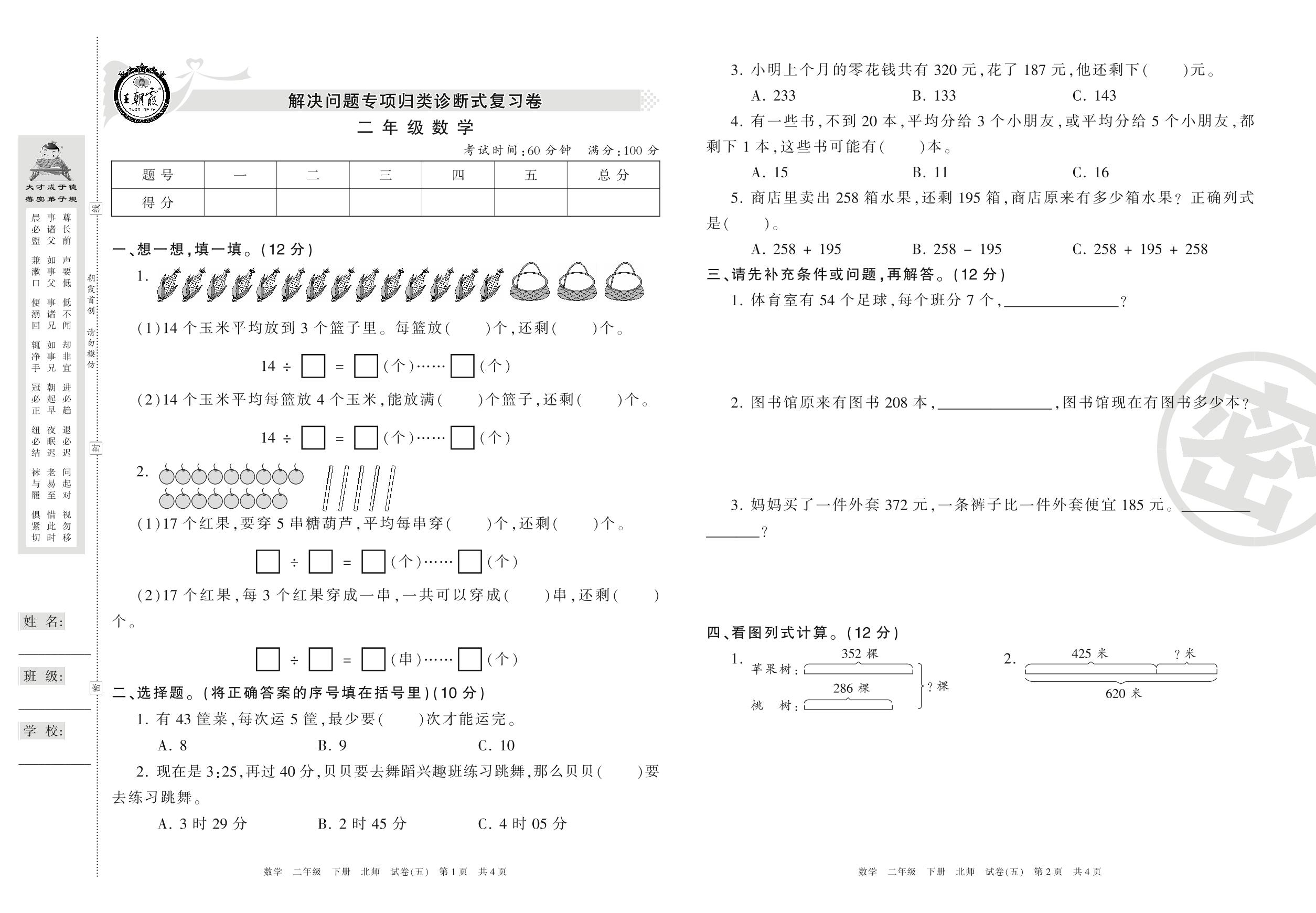 王朝霞期末专项卷二年级下册数学(北师版)【5】