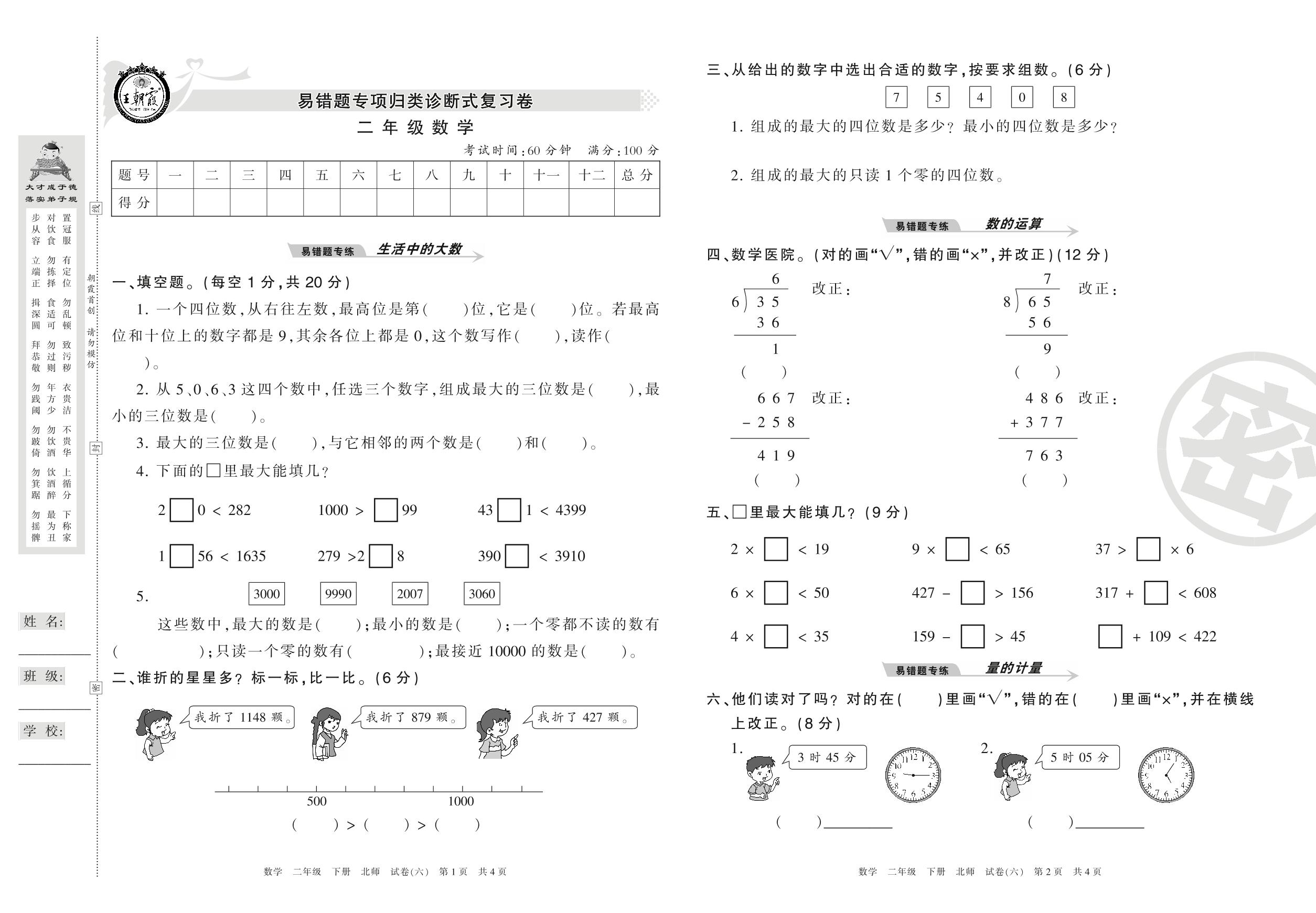 王朝霞期末专项卷二年级下册数学(北师版)【6】