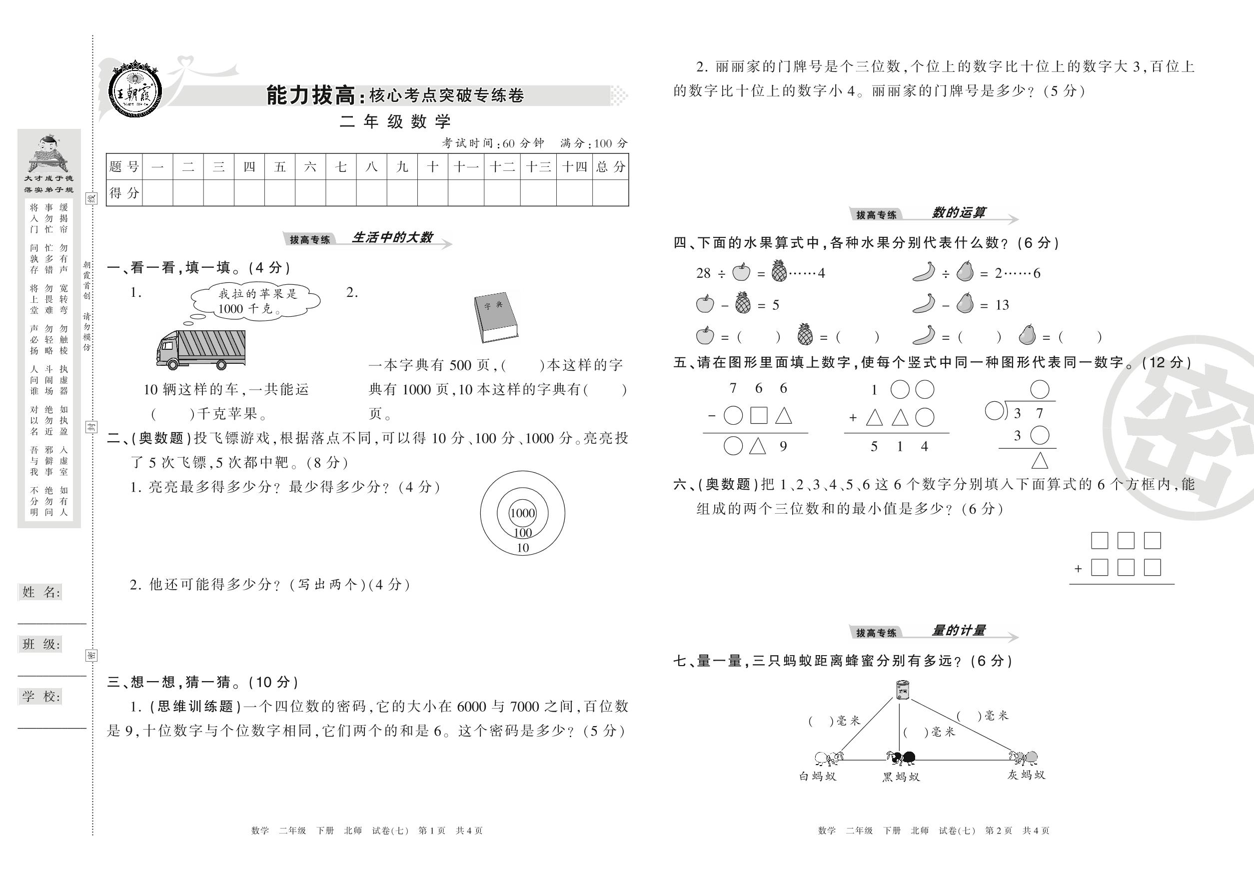 专练卷二年级下册数学(北师版)【7】