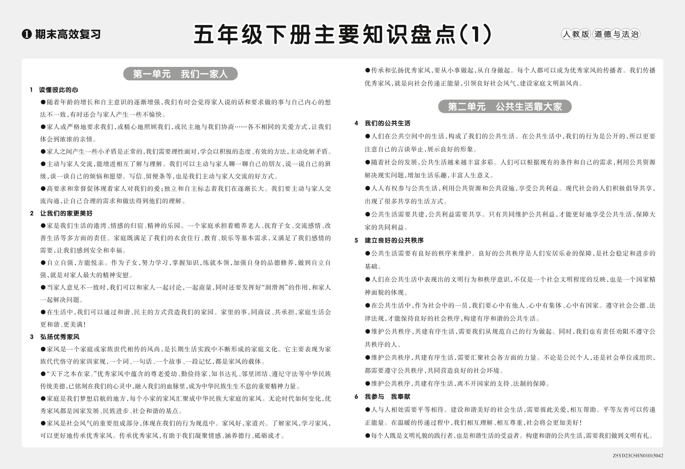 2023年(下册)主要知识盘点—人教五道德与法治