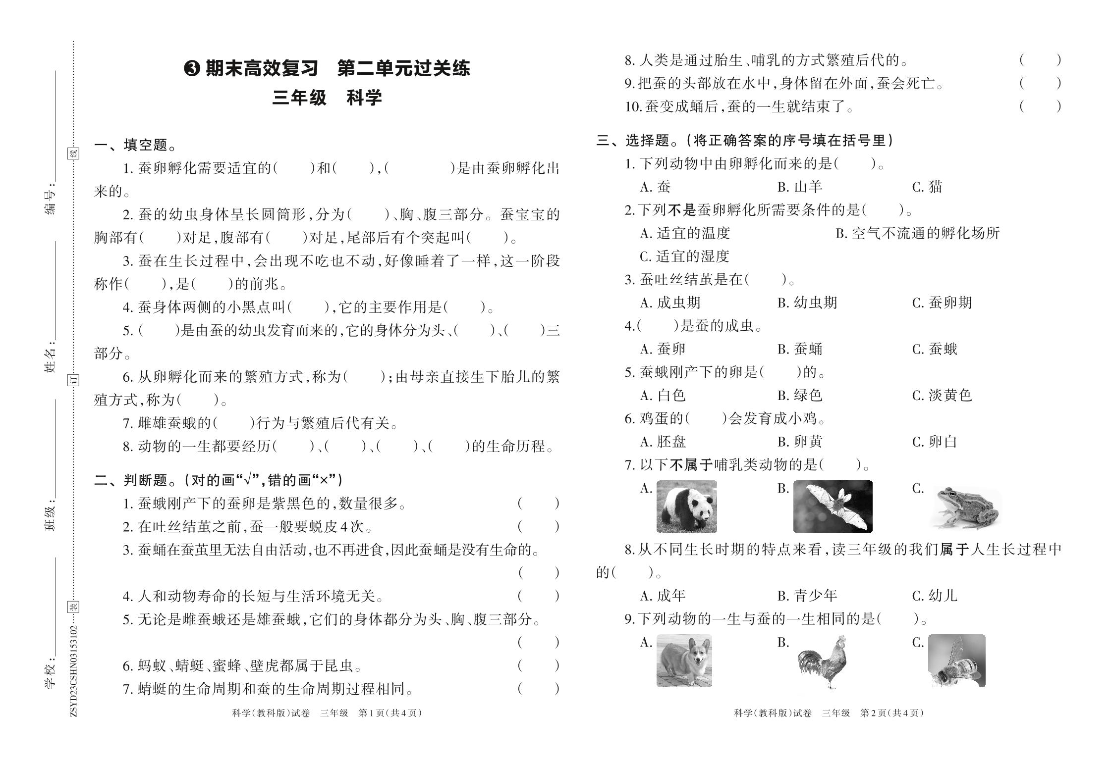 2023年春下册三年级科学教科版 期末高效复习 第二单元过关练