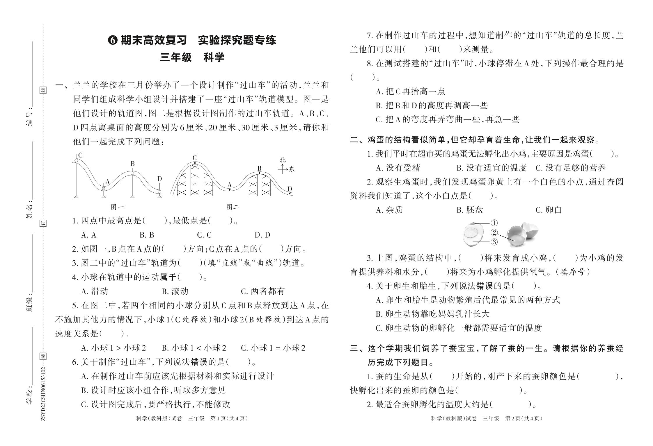 三年级科学教科版下册期末卷