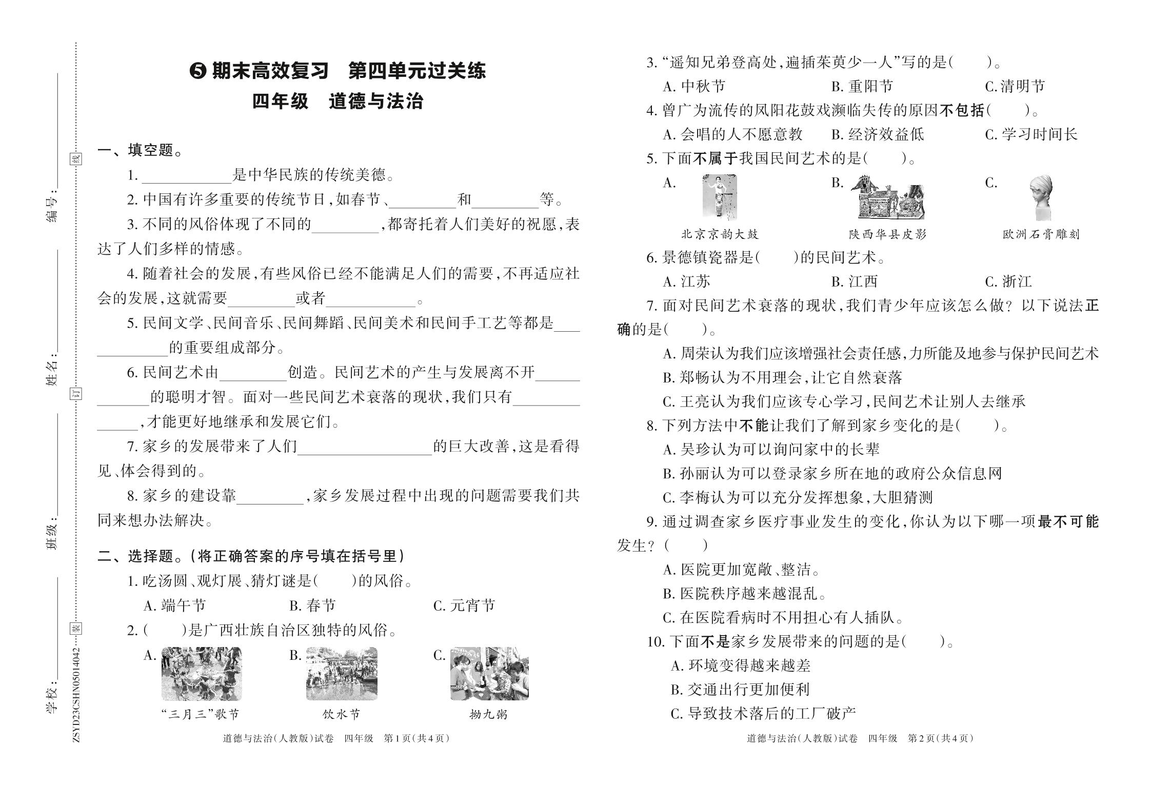 2023年春下册四年级道德与法治人教版 期末高效复习 第四单元过关练