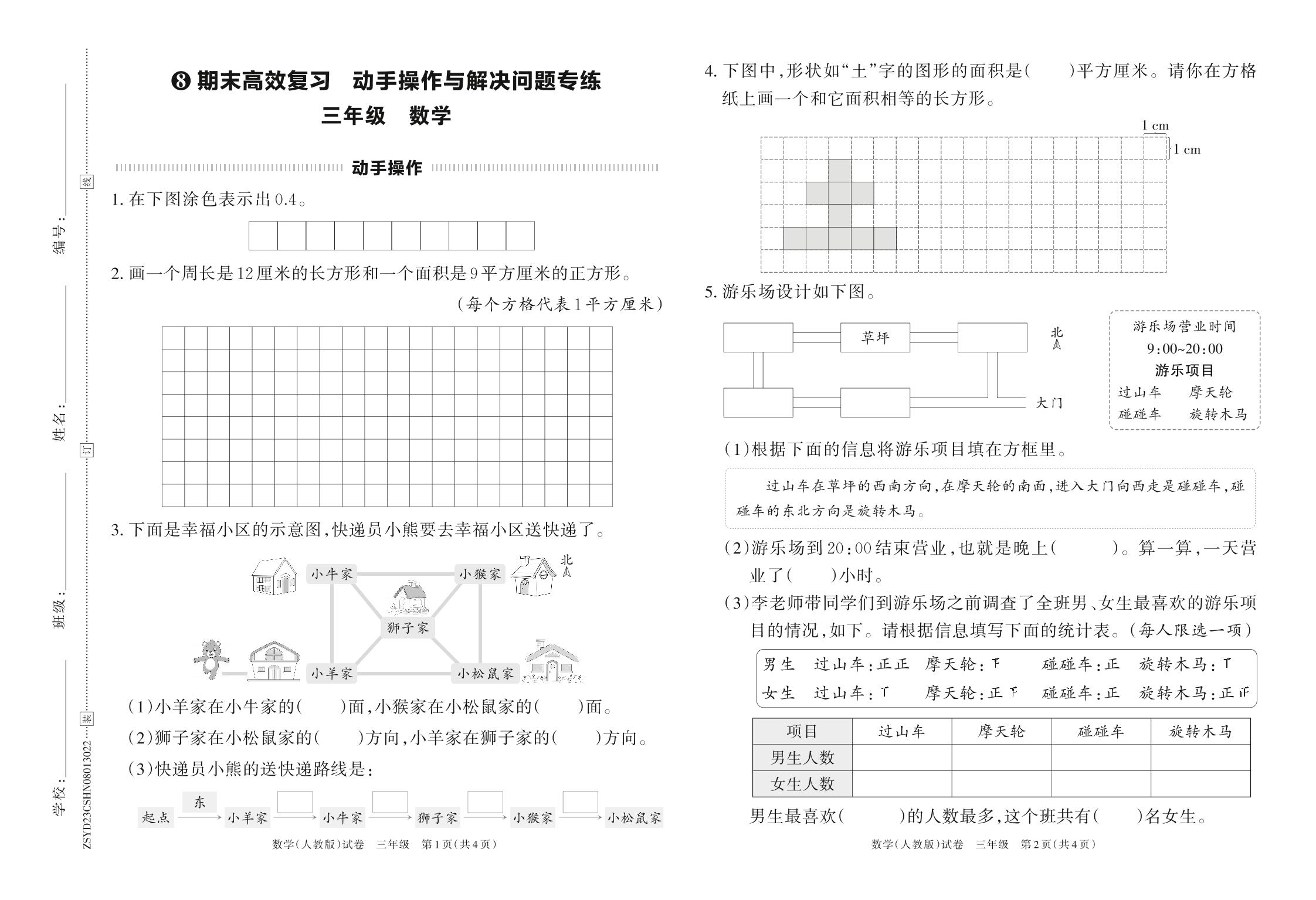 2023年春下册三年级数学人教版 期末高效复习 动手操作与解决问题专练