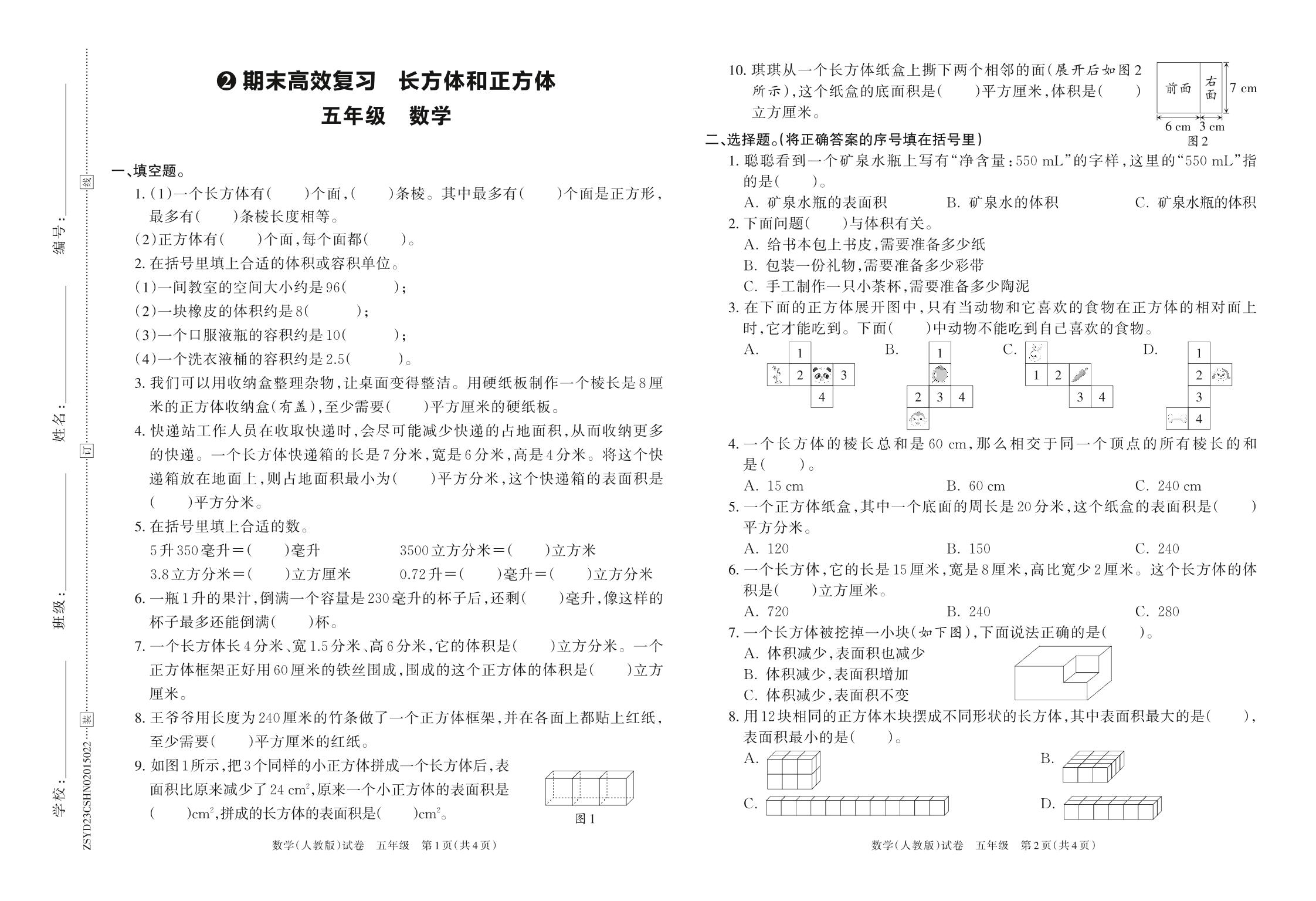 2023年春下册五年级数学人教版 期末高效复习 长方体和正方体