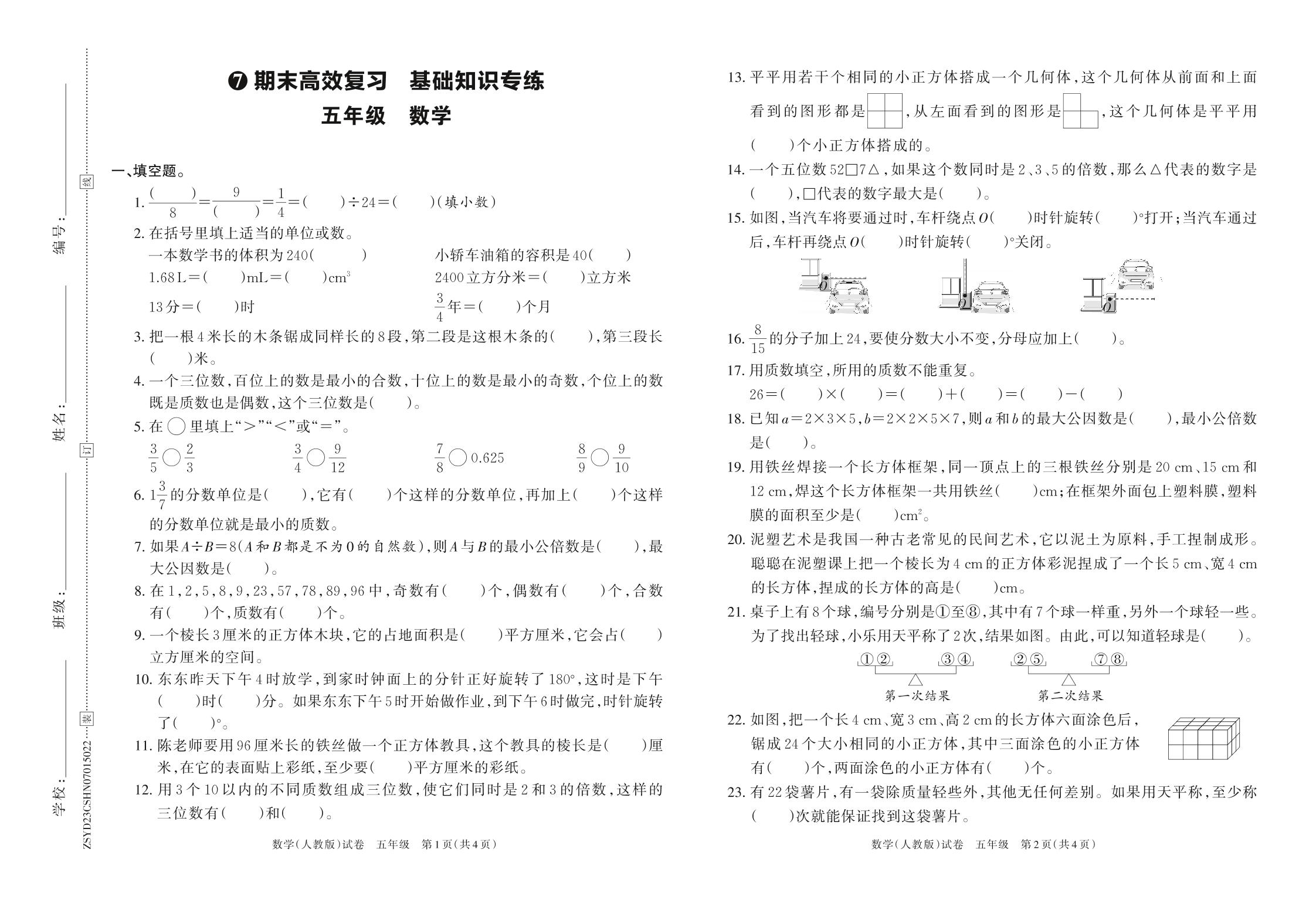 2023年春下册五年级数学人教版 期末高效复习 基础知识专练
