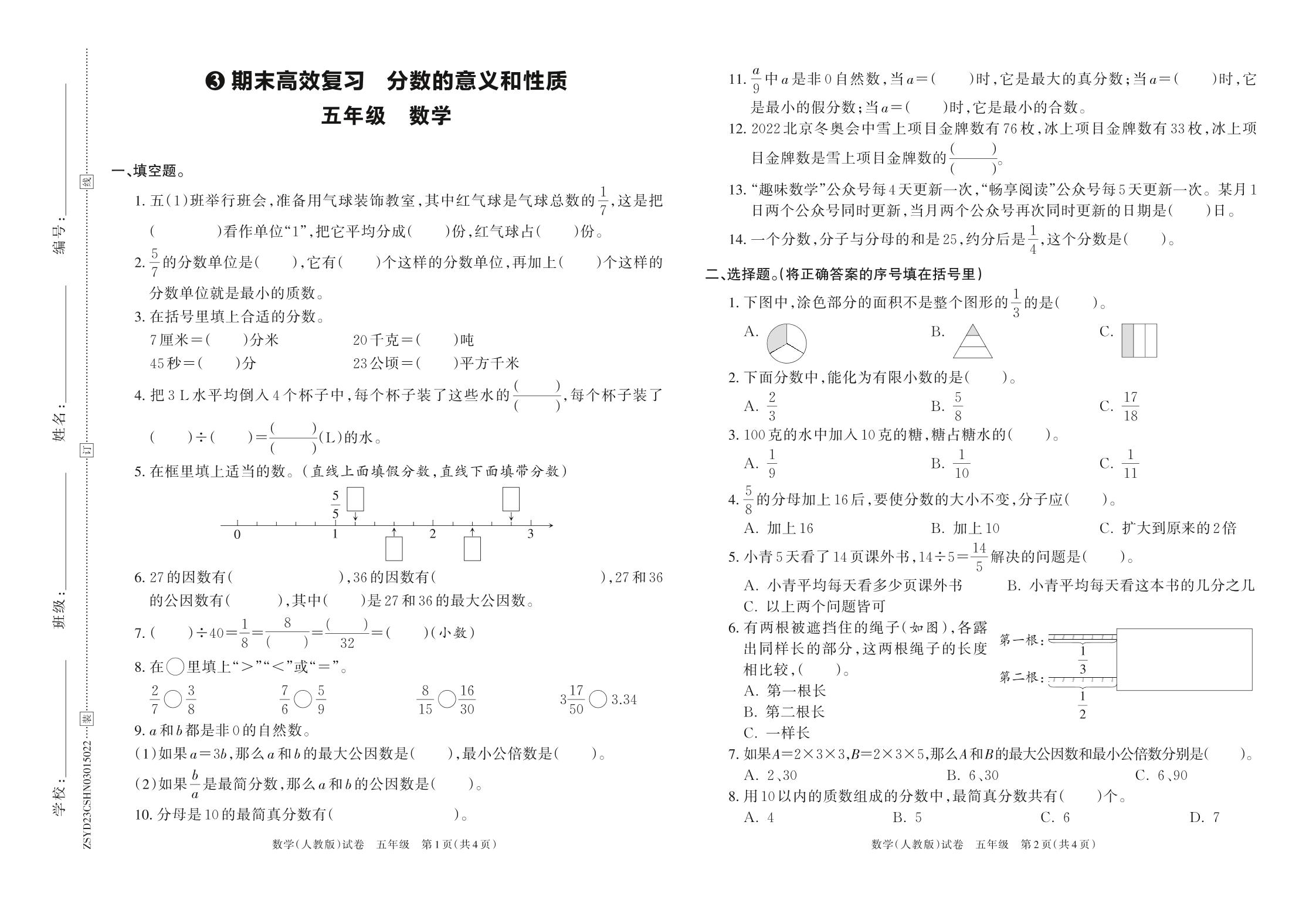 2023年春下册五年级数学人教版 期末高效复习 分数的意义和性质