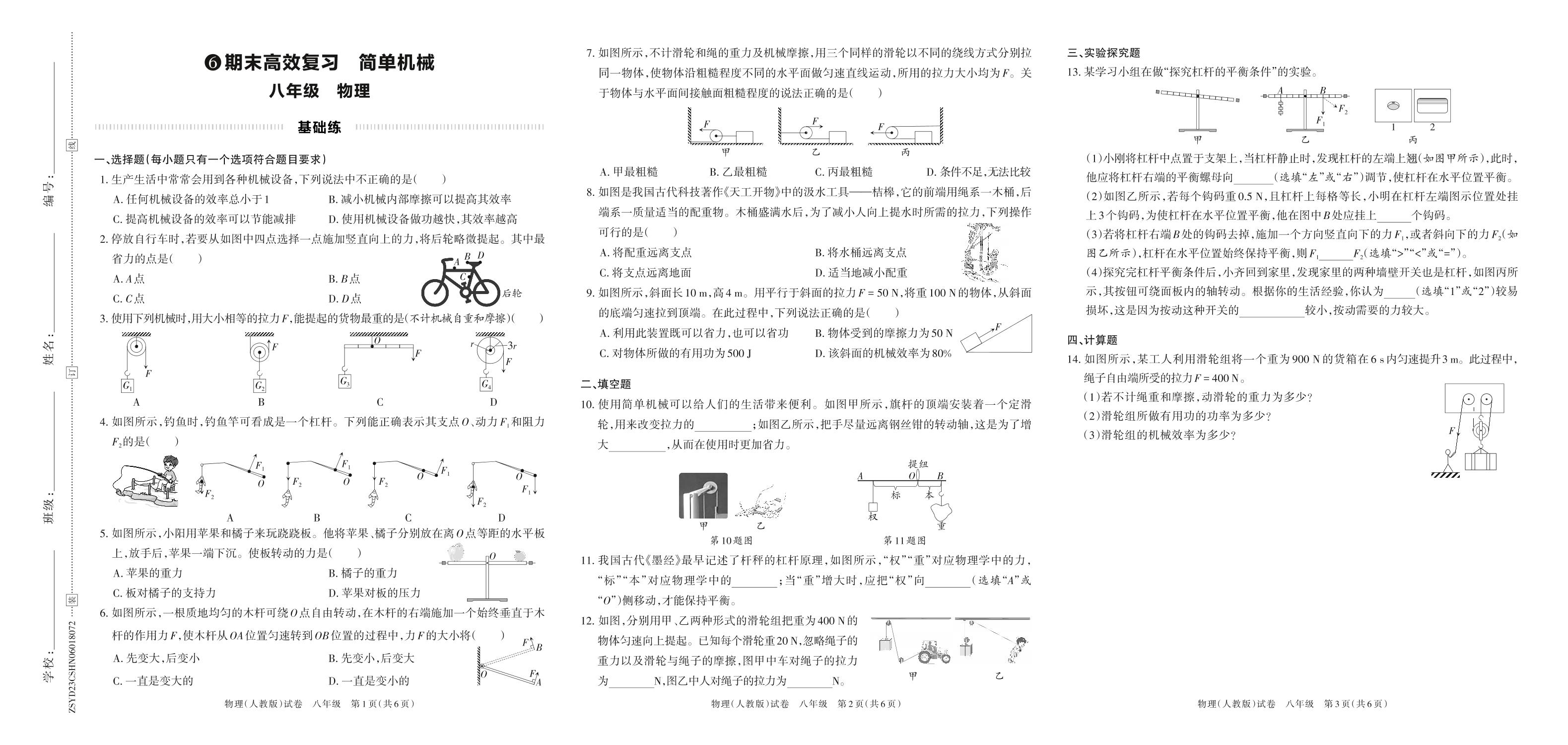 2023年春下册八年级物理人教版 期末高效复习 简单机械