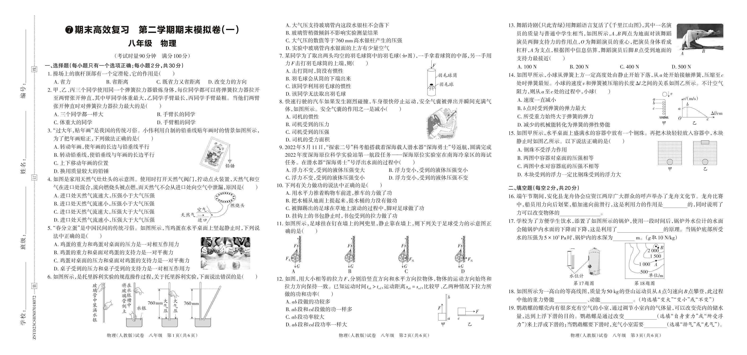 八年级物理人教版下册期末卷