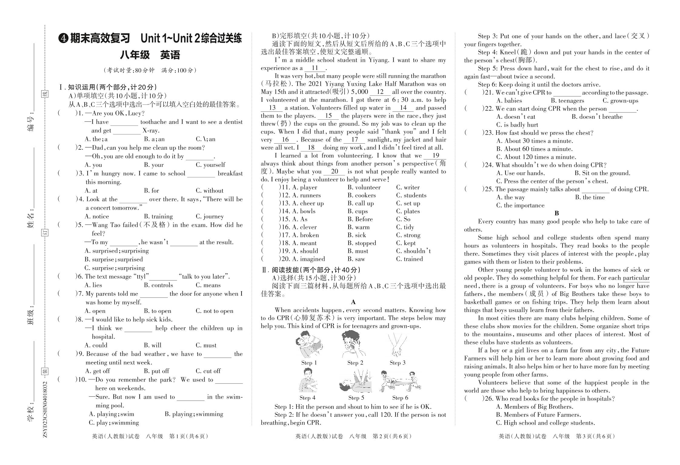 2023年春下册八年级英语人教版 期末高效复习 Unit 1~Unit 2 综合过关练