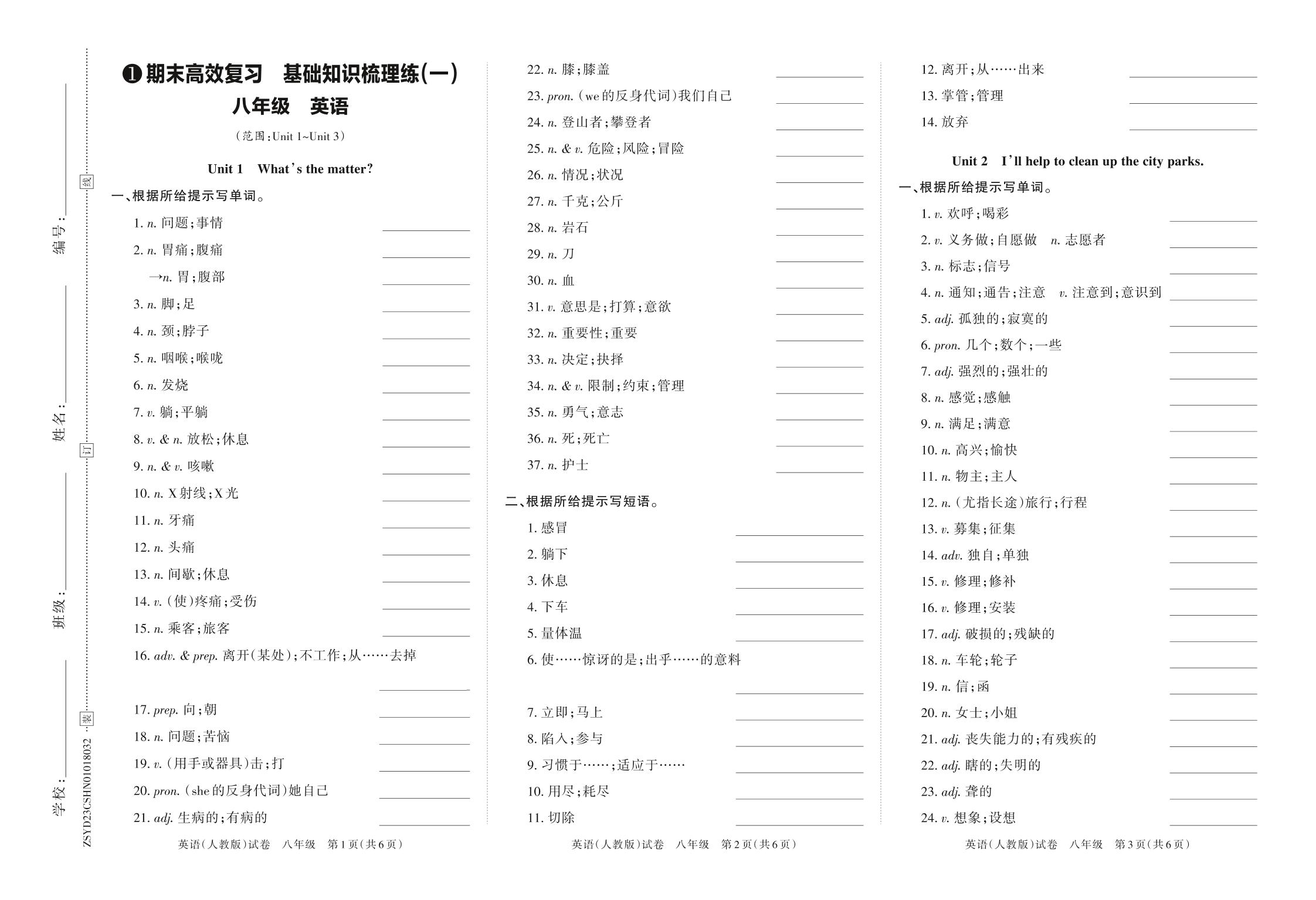 2023年春下册八年级英语人教版 期末高效复习 基础知识梳理练(一)