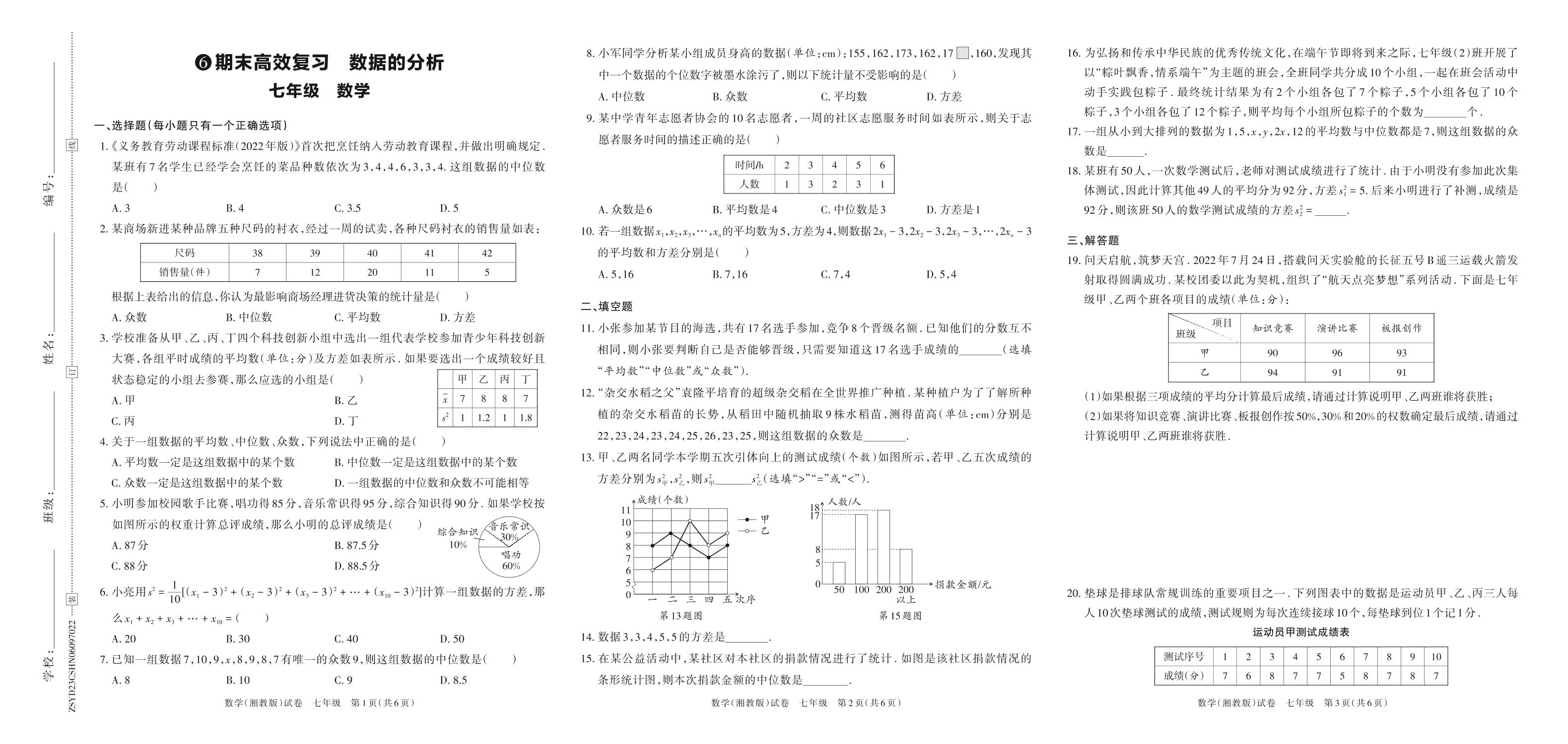 2023年春下册七年级数学湘教版 期末高效复习 数据的分析