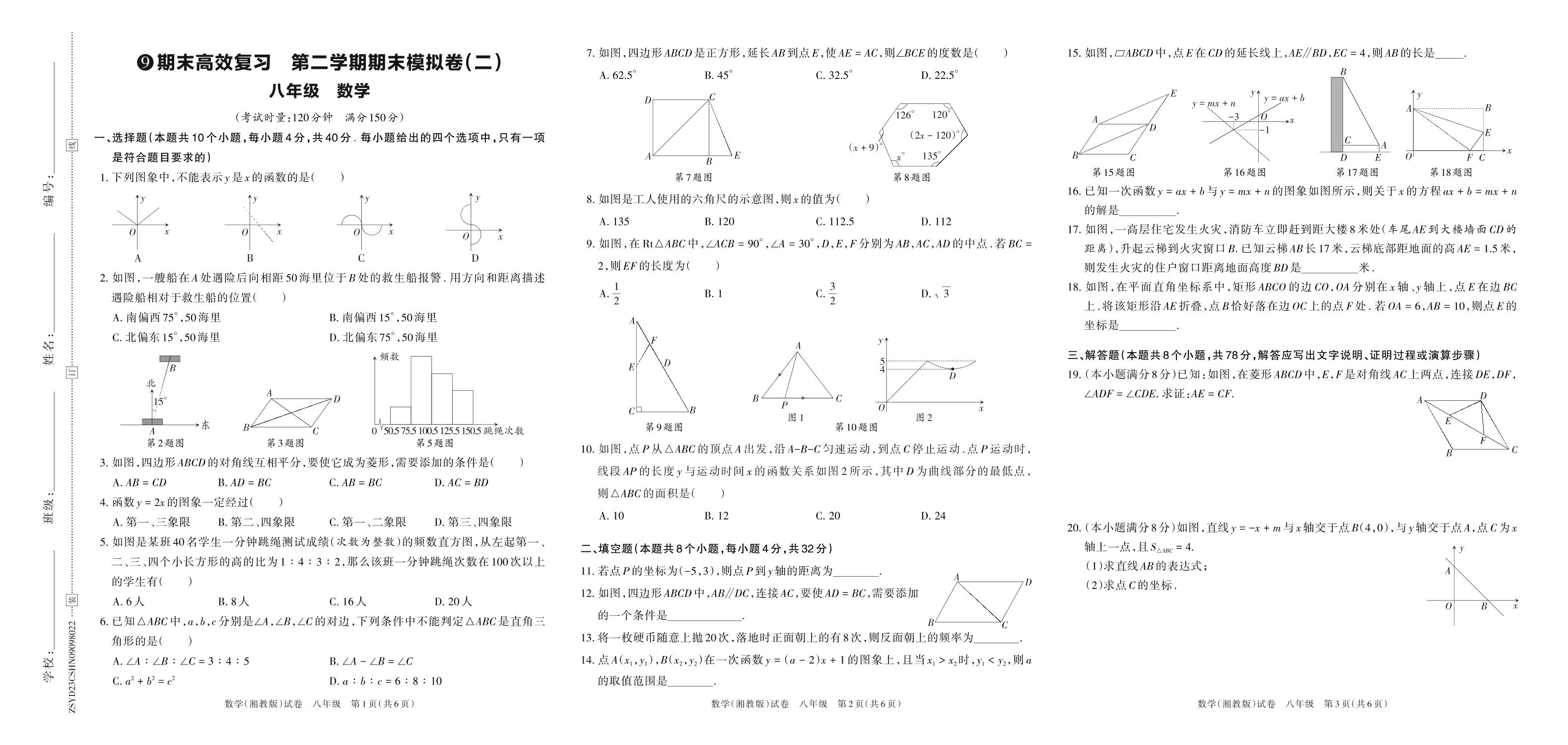 2023年春下册八年级数学湘教版 期末高效复习 第二学期期末模拟卷(二)