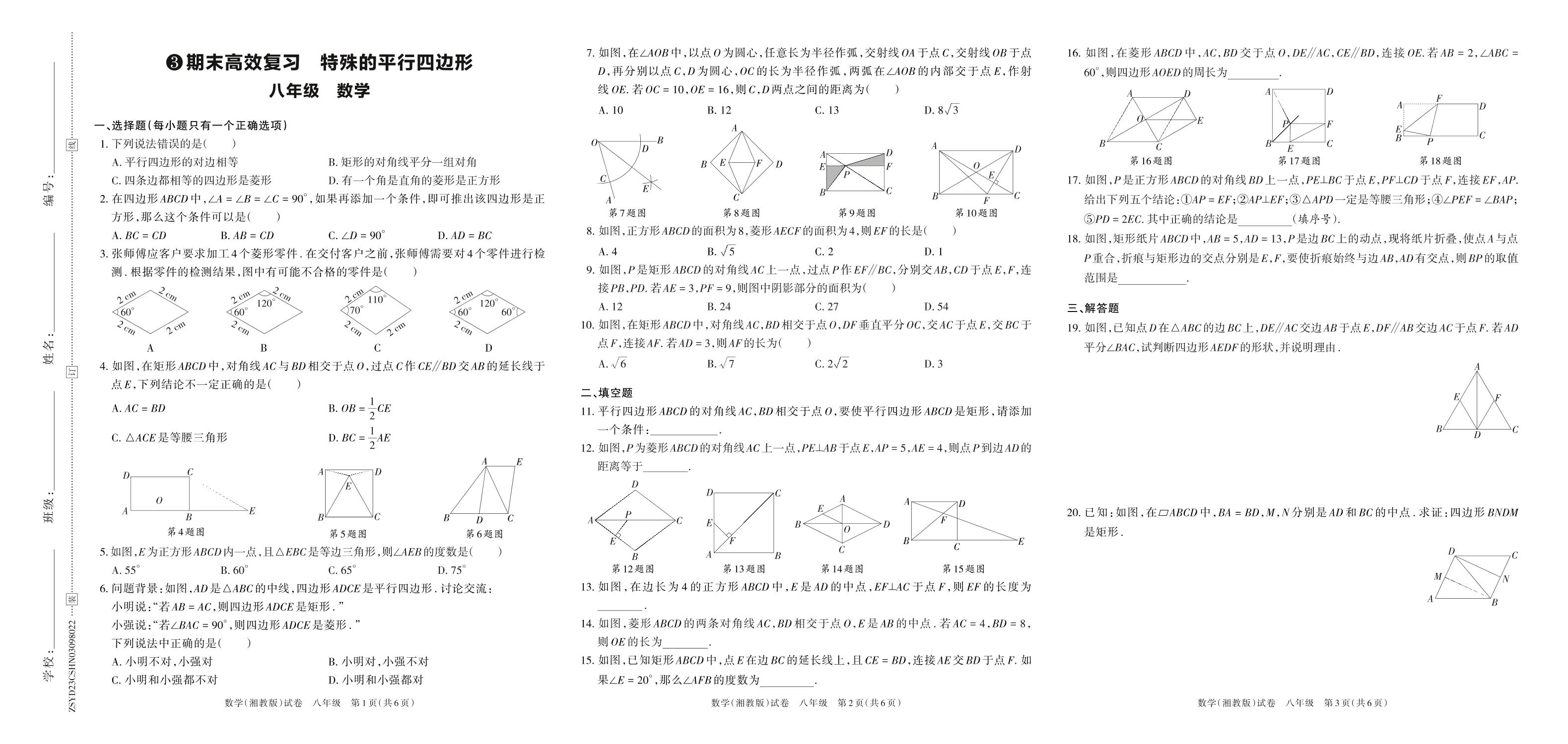 2023年春下册八年级数学湘教版 期末高效复习 特殊的平行四边形