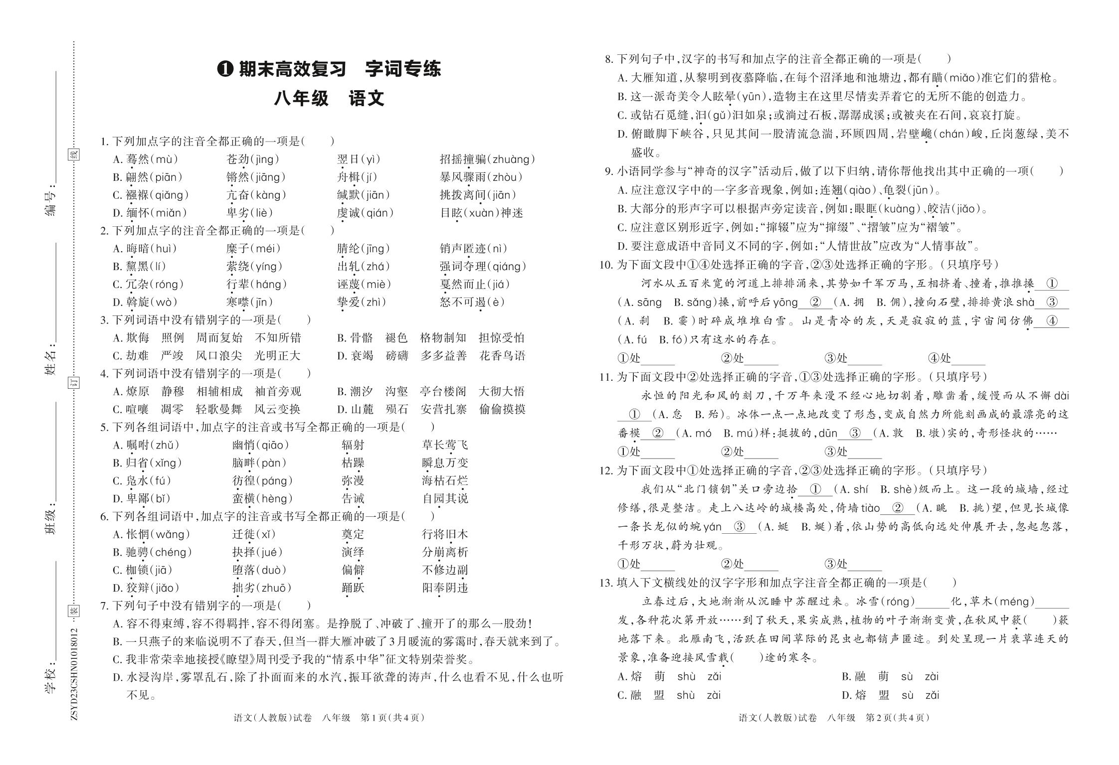 2023年春下册八年级语文人教版 期末高效复习 字词专练