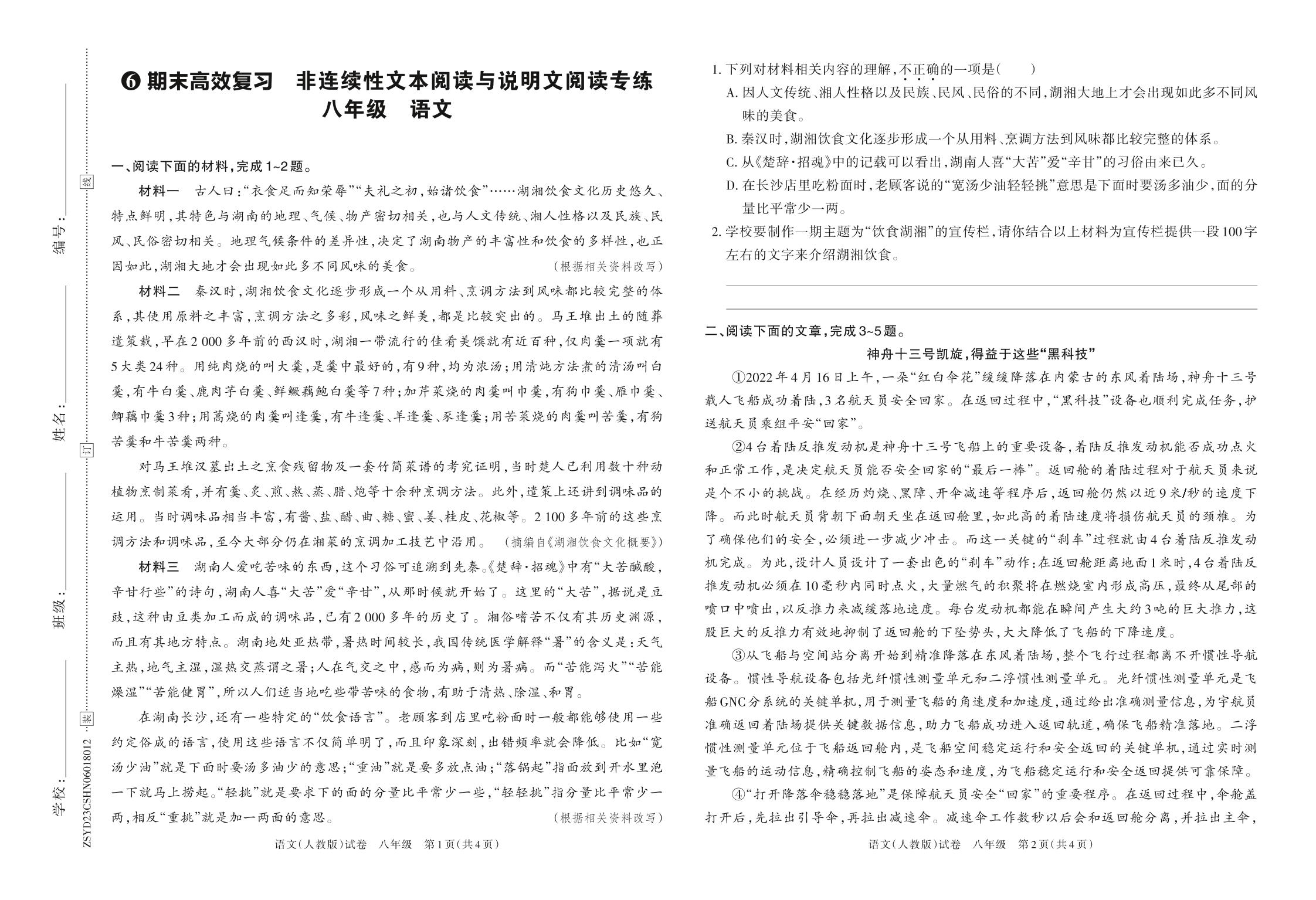 2023年春下册八年级语文人教版 期末高效复习 非连续性文本阅读与说明文阅读专练