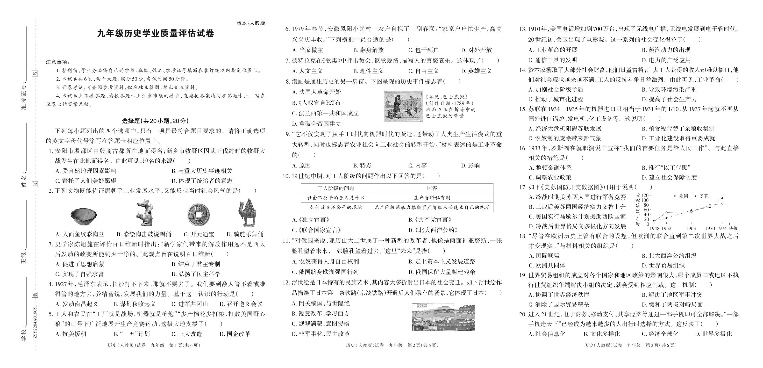 河南省安阳市安阳县2023春开学学业质量评估试卷九年级历史(人教版)