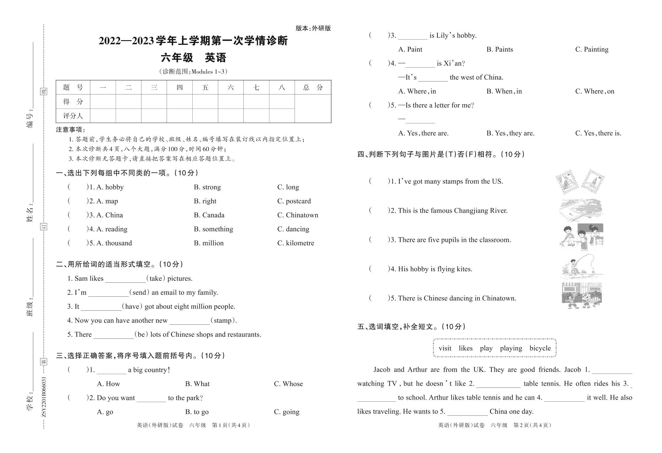 河南省漯河市舞阳县第二实验小学2022—2023学年上学期第一次学情诊断试卷六年级英语(外研版)