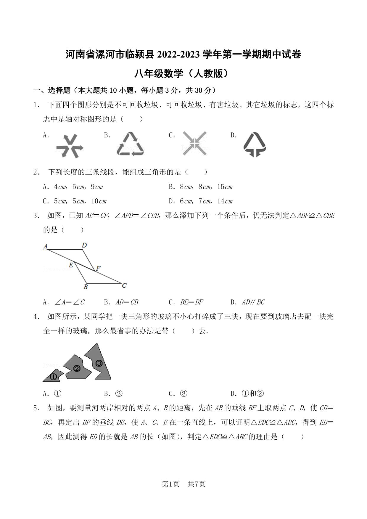 河南省漯河市临颍县2022-2023学年第一学期期中试卷八年级数学(人教版)