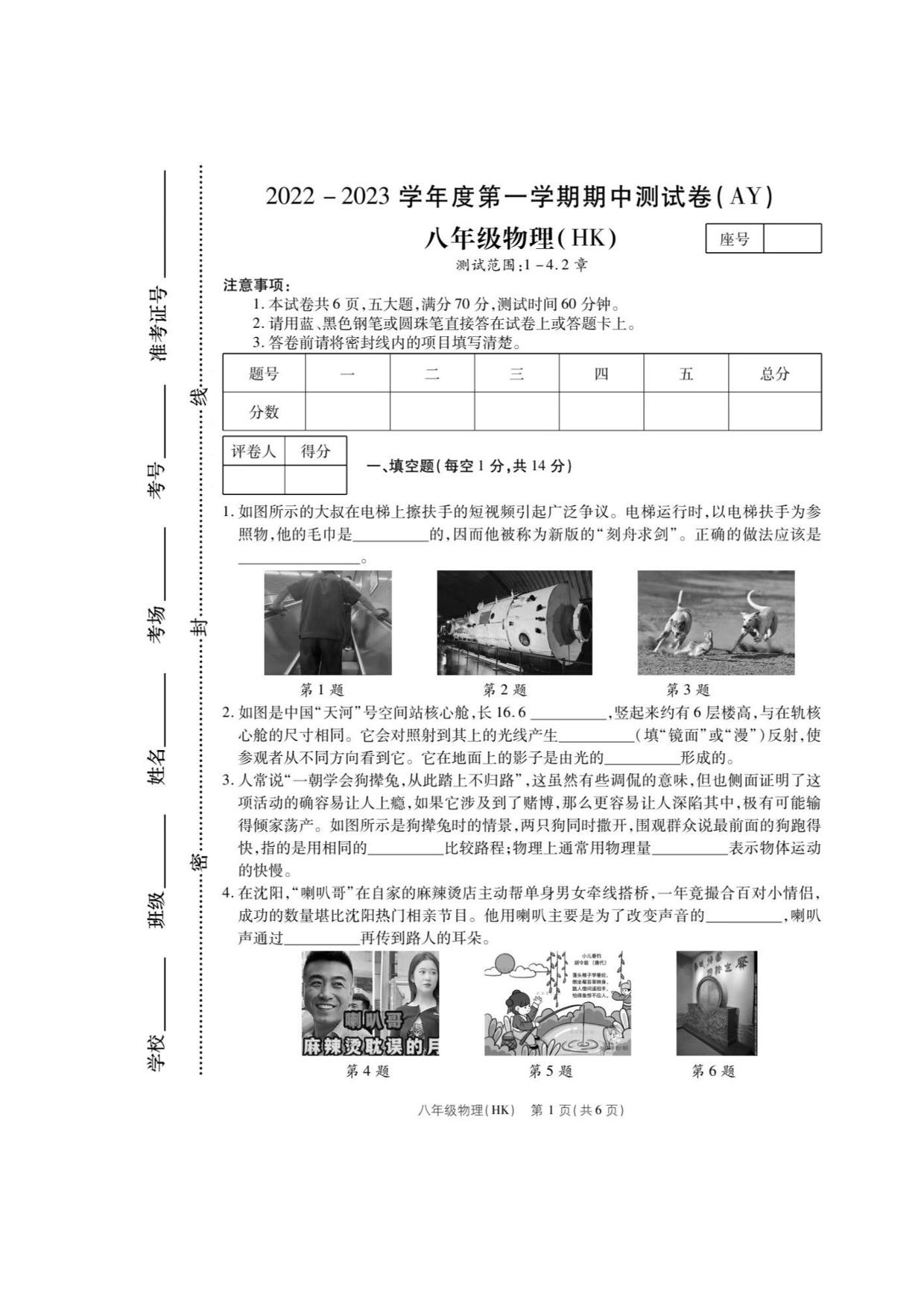 河南省安阳市五校联考2022-2023学年第一学期期中试卷八年级物理(沪科版)