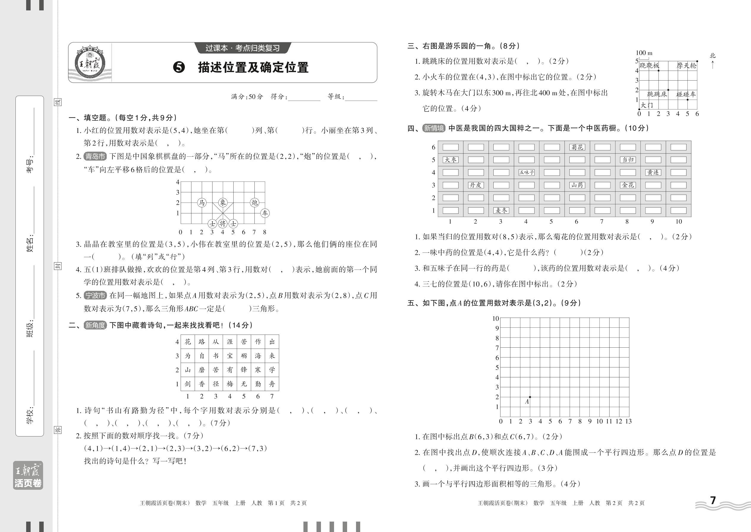 2023上册五年级数学人教版 5 描述位置及确定位置