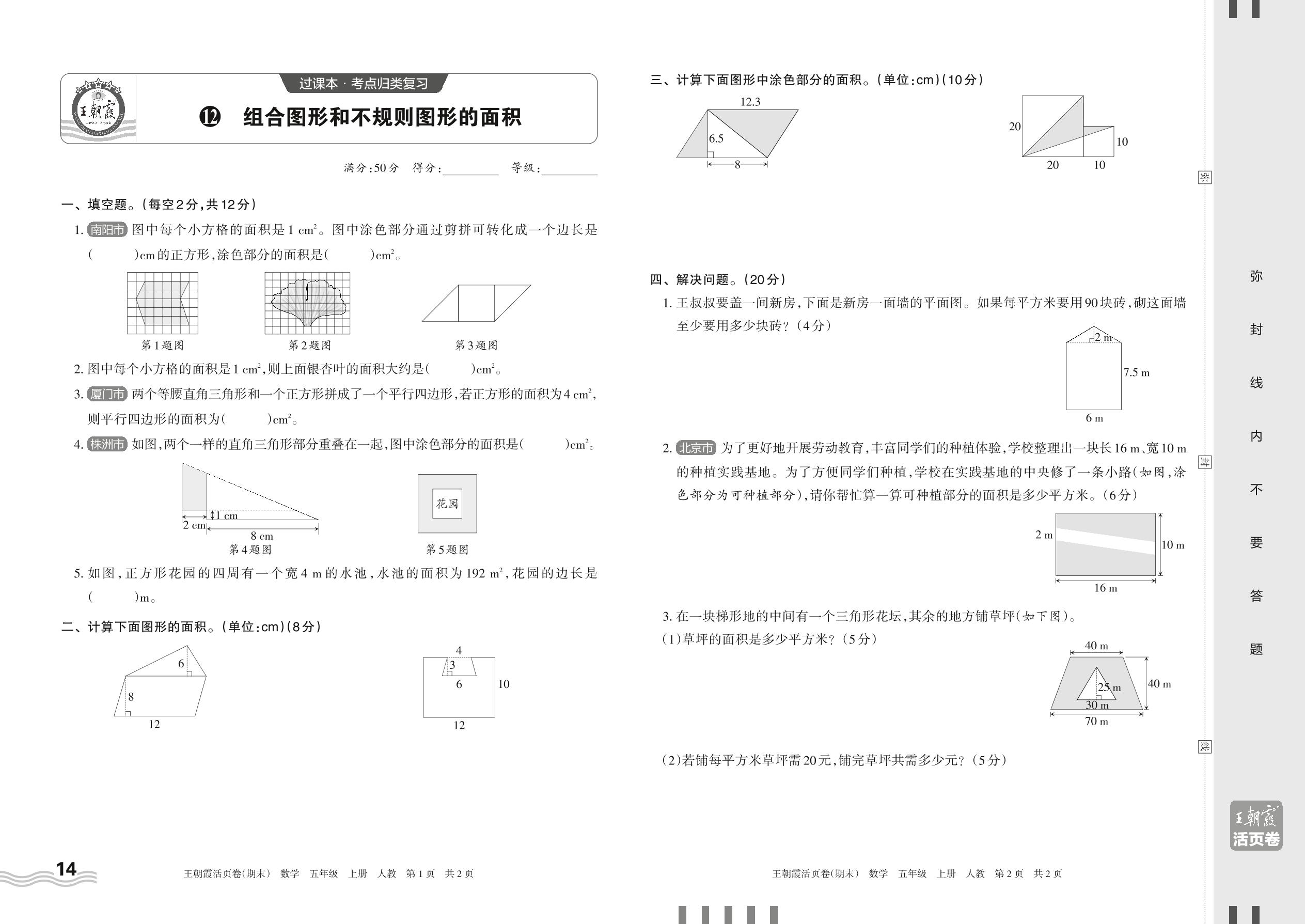 2023上册五年级数学人教版 12 组合图形和不规则图形的面积