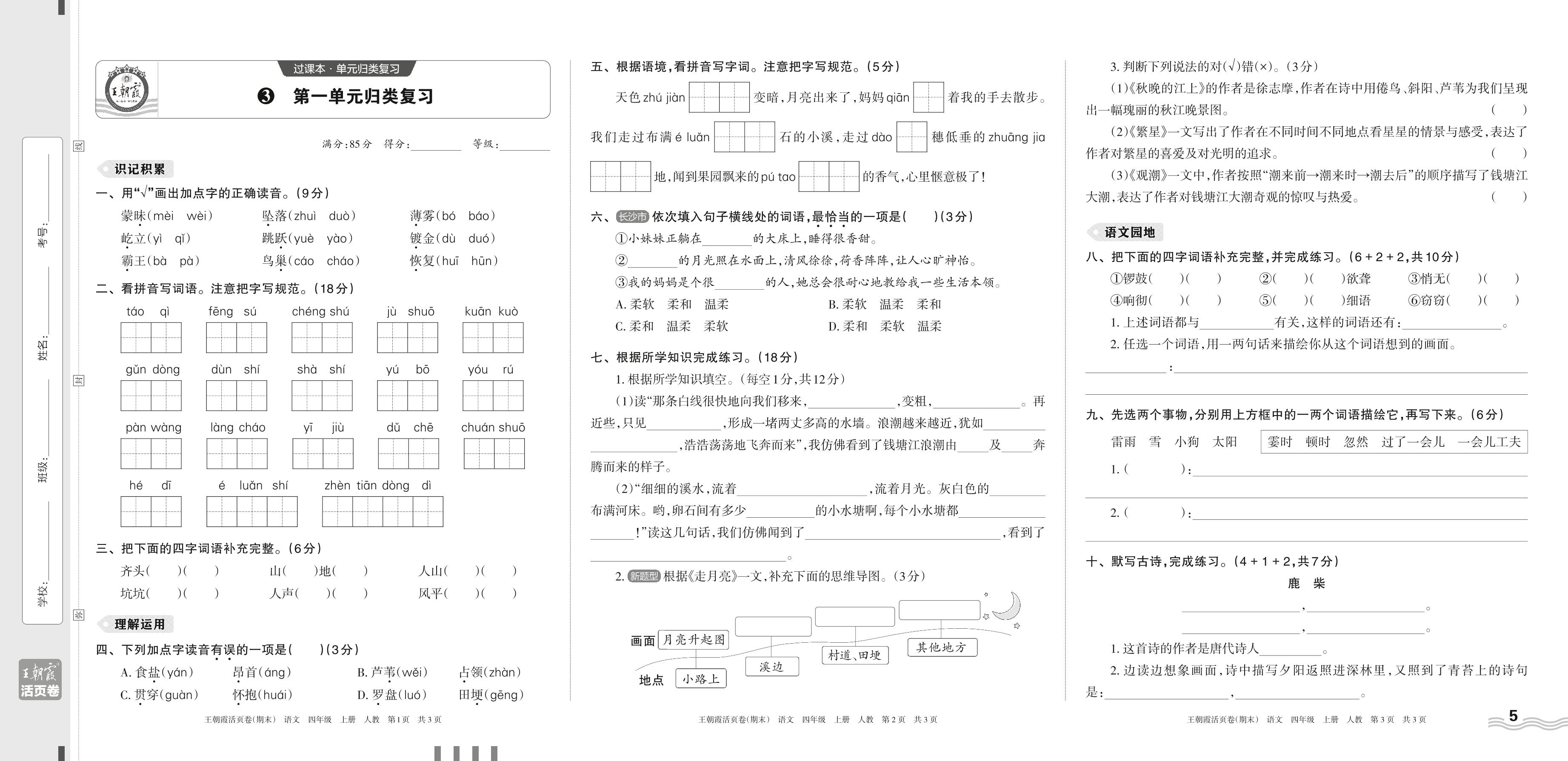 2023上册四年级语文人教版 3 第一单元归类复习