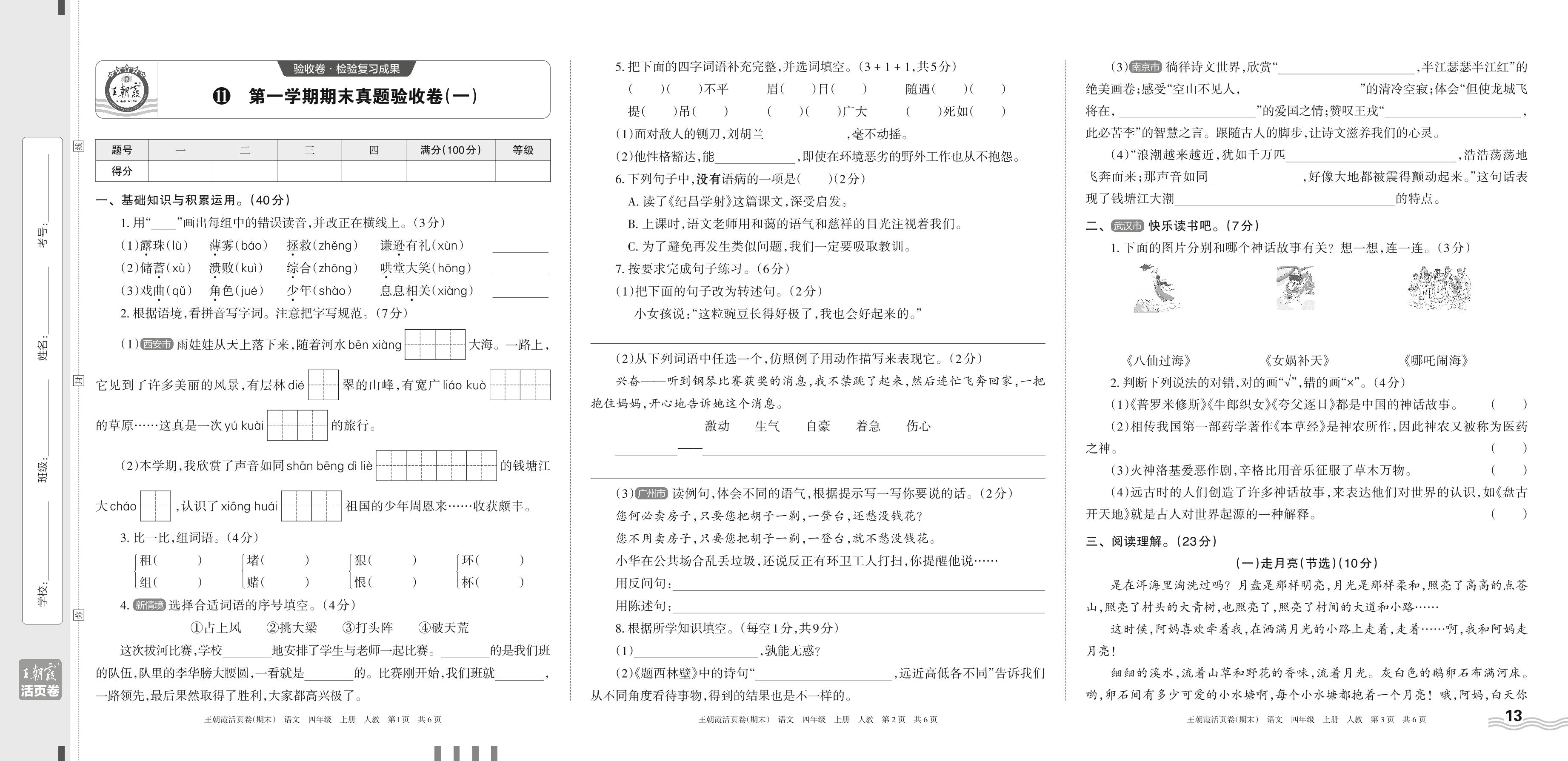 2023上册四年级语文人教版 11 第一学期期末真题验收卷(一)