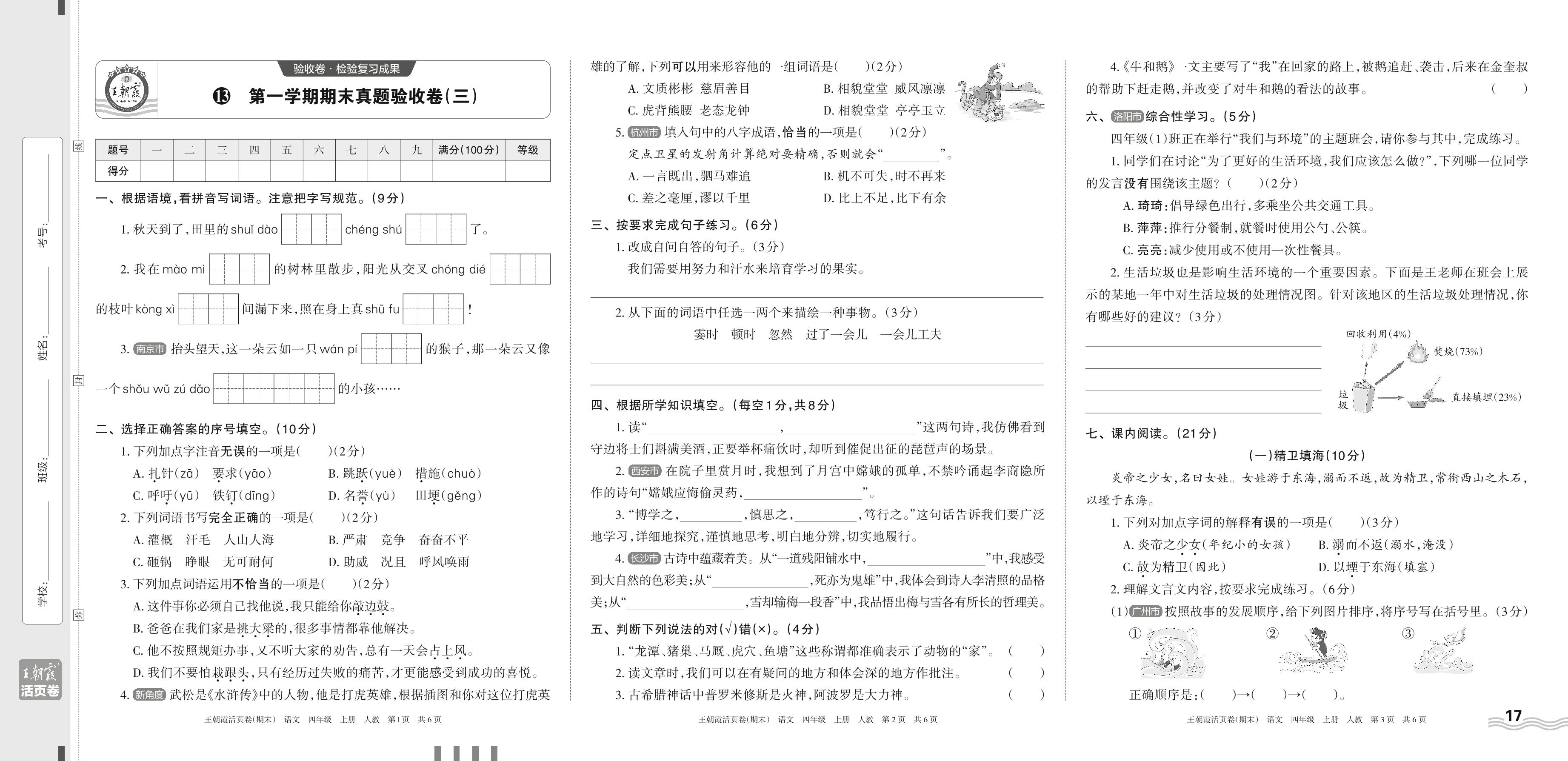 2023上册四年级语文人教版 13 第一学期期末真题验收卷(三)