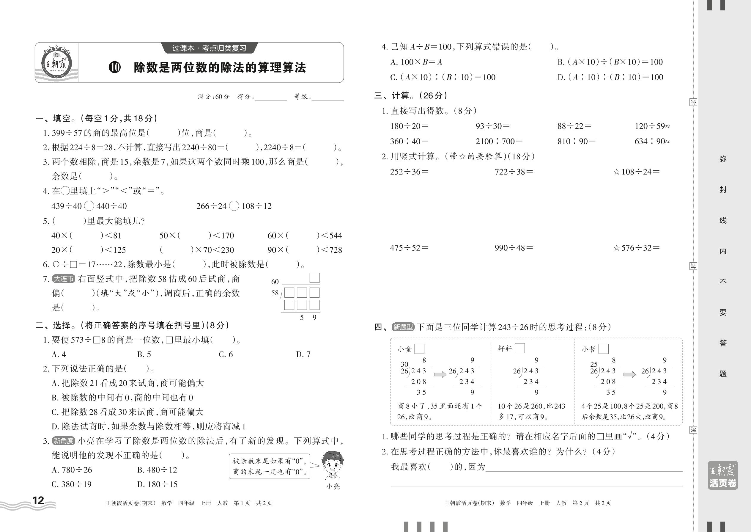 2023上册四年级数学人教版 10 除数是两位数的除法的算理算法