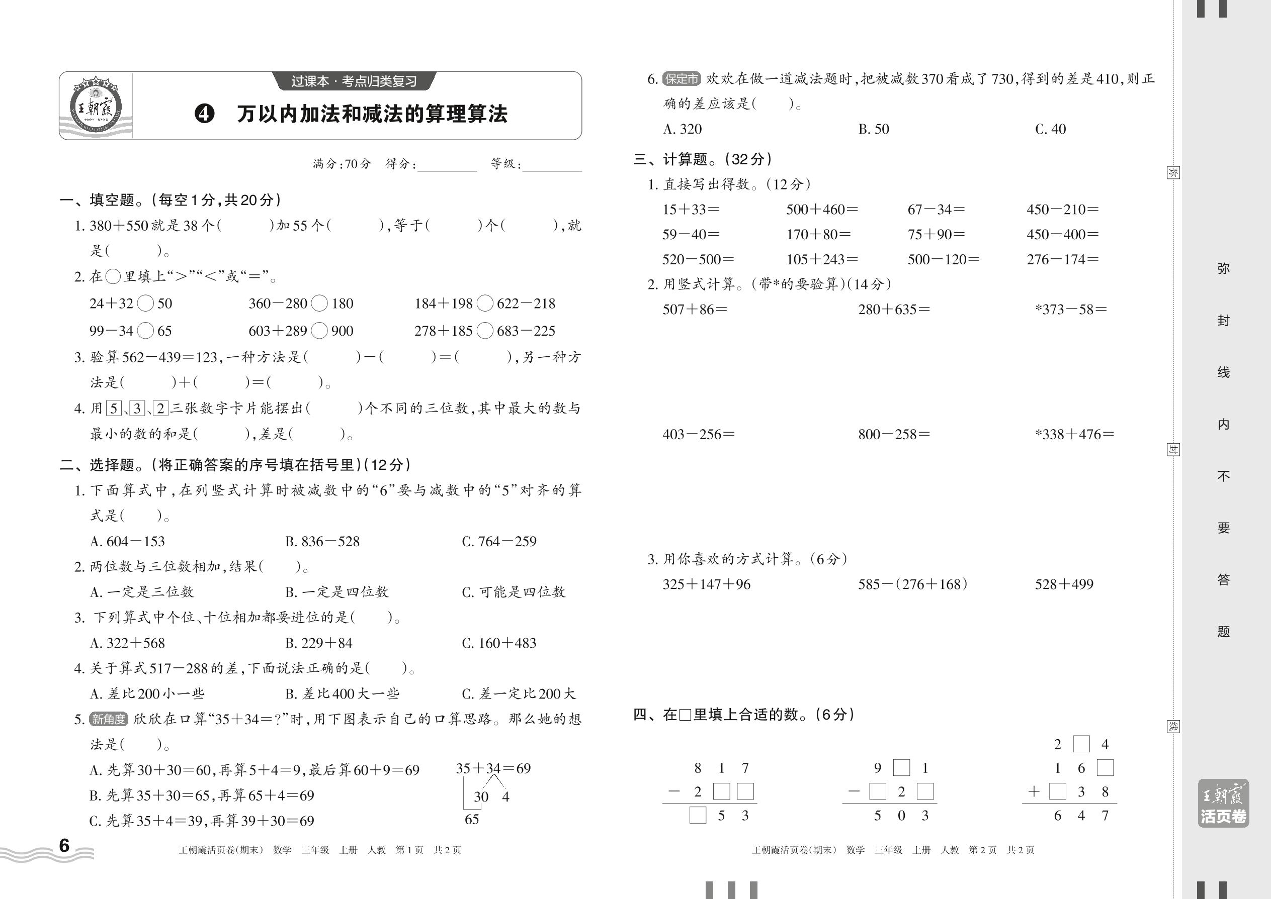 2023上册三年级数学人教版 4 万以内加法和减法的算理算法