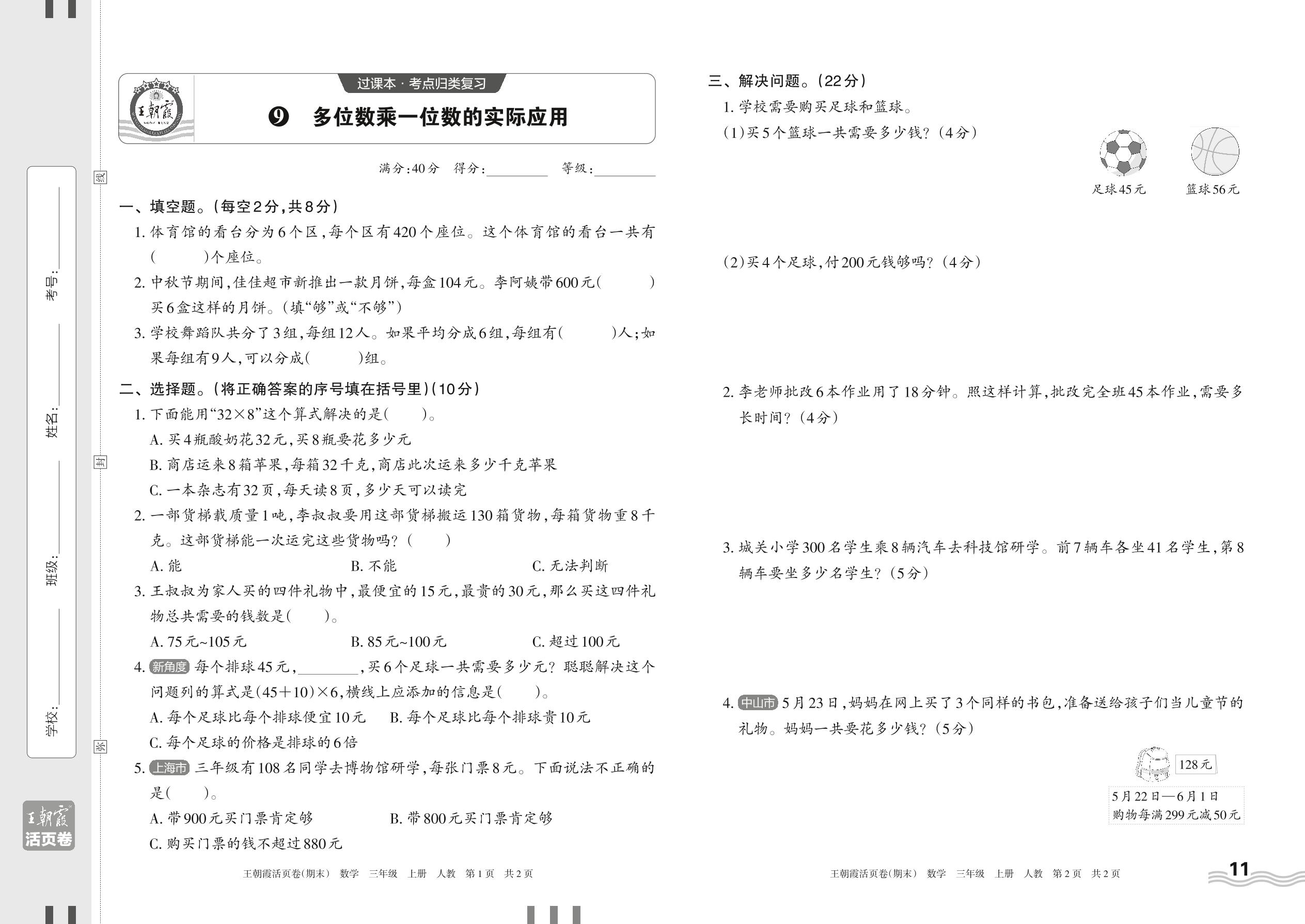 2023上册三年级数学人教版 9 多位数乘一位数的实际应用