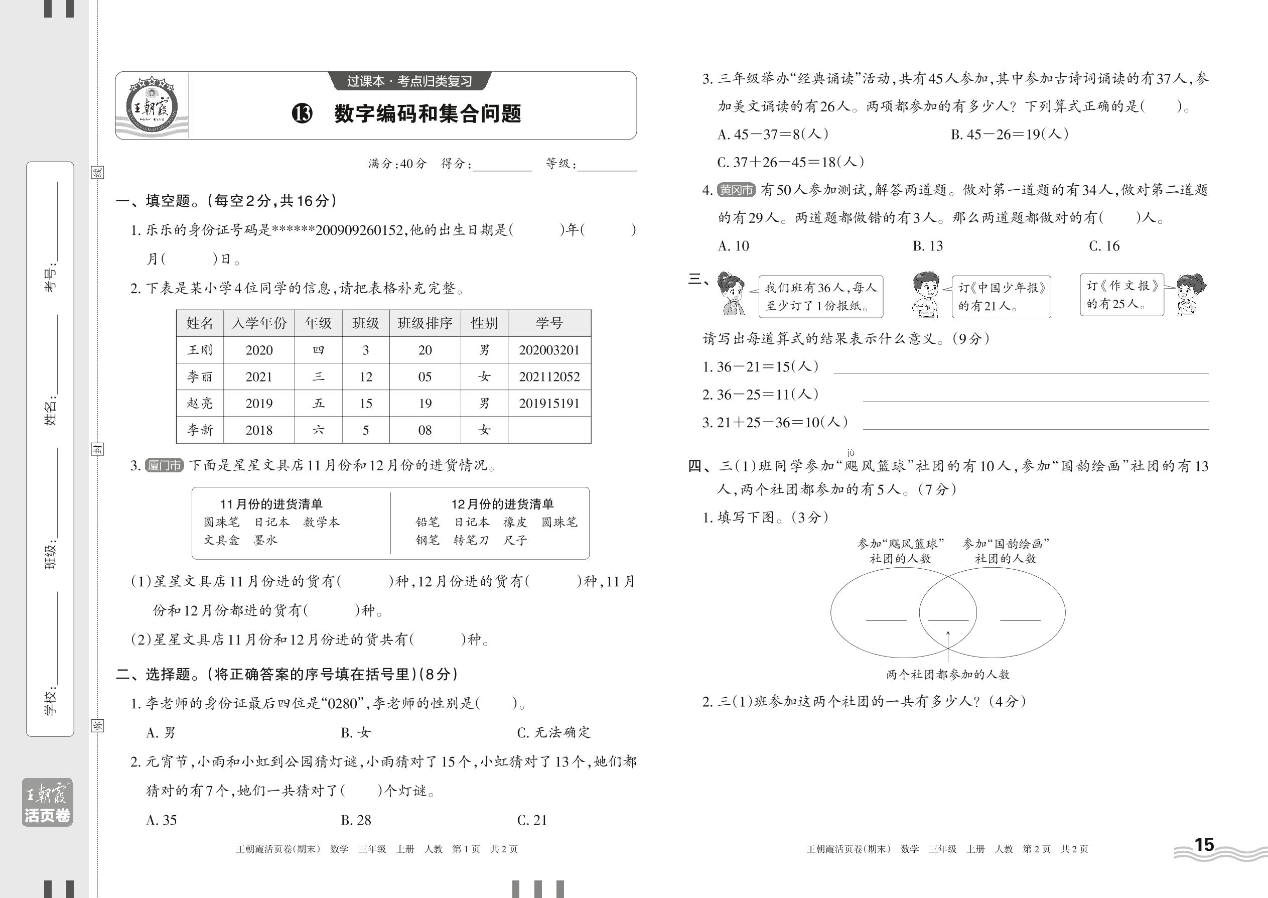 2023上册三年级数学人教版 13 数字编码和集合问题