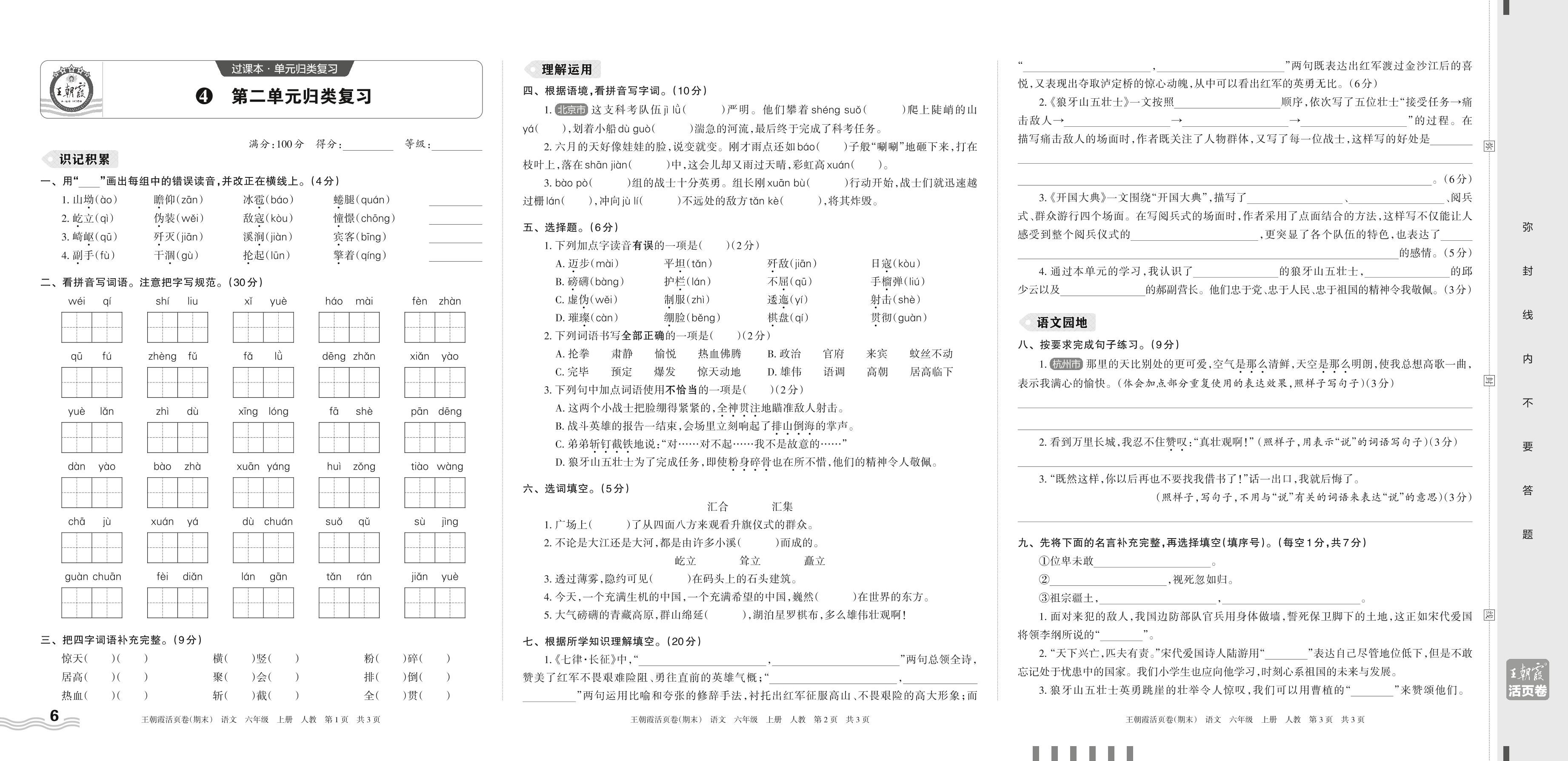 2023上册六年级语文人教版 4 第二单元归类复习