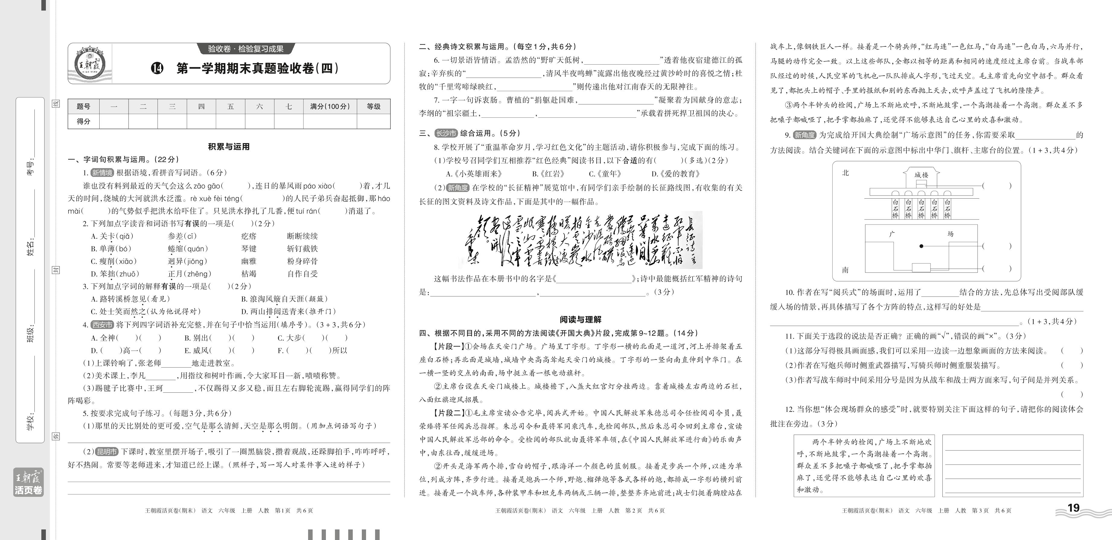 2023上册六年级语文人教版 14 第一学期期末真题验收卷(四)