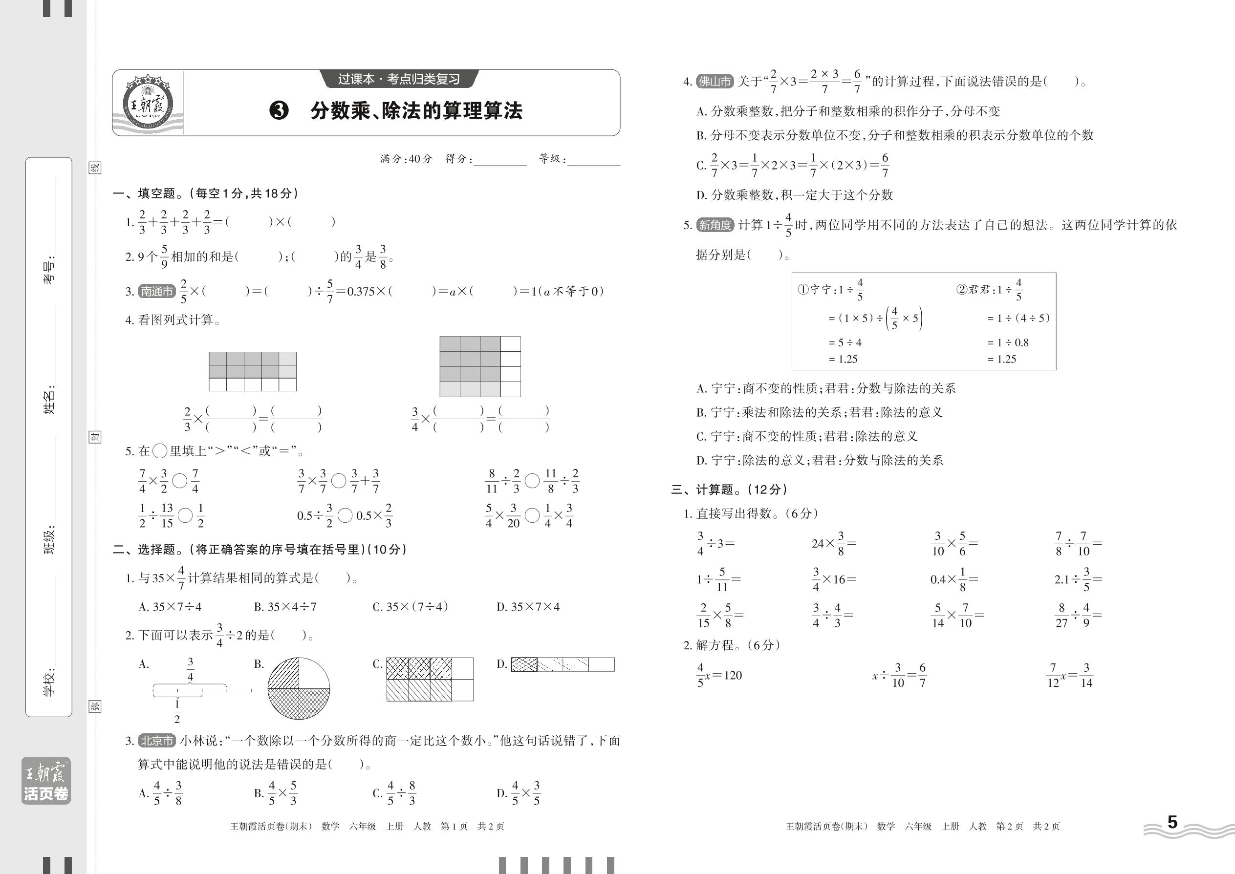 2023上册六年级数学人教版 3 分数乘、除法的算理算法
