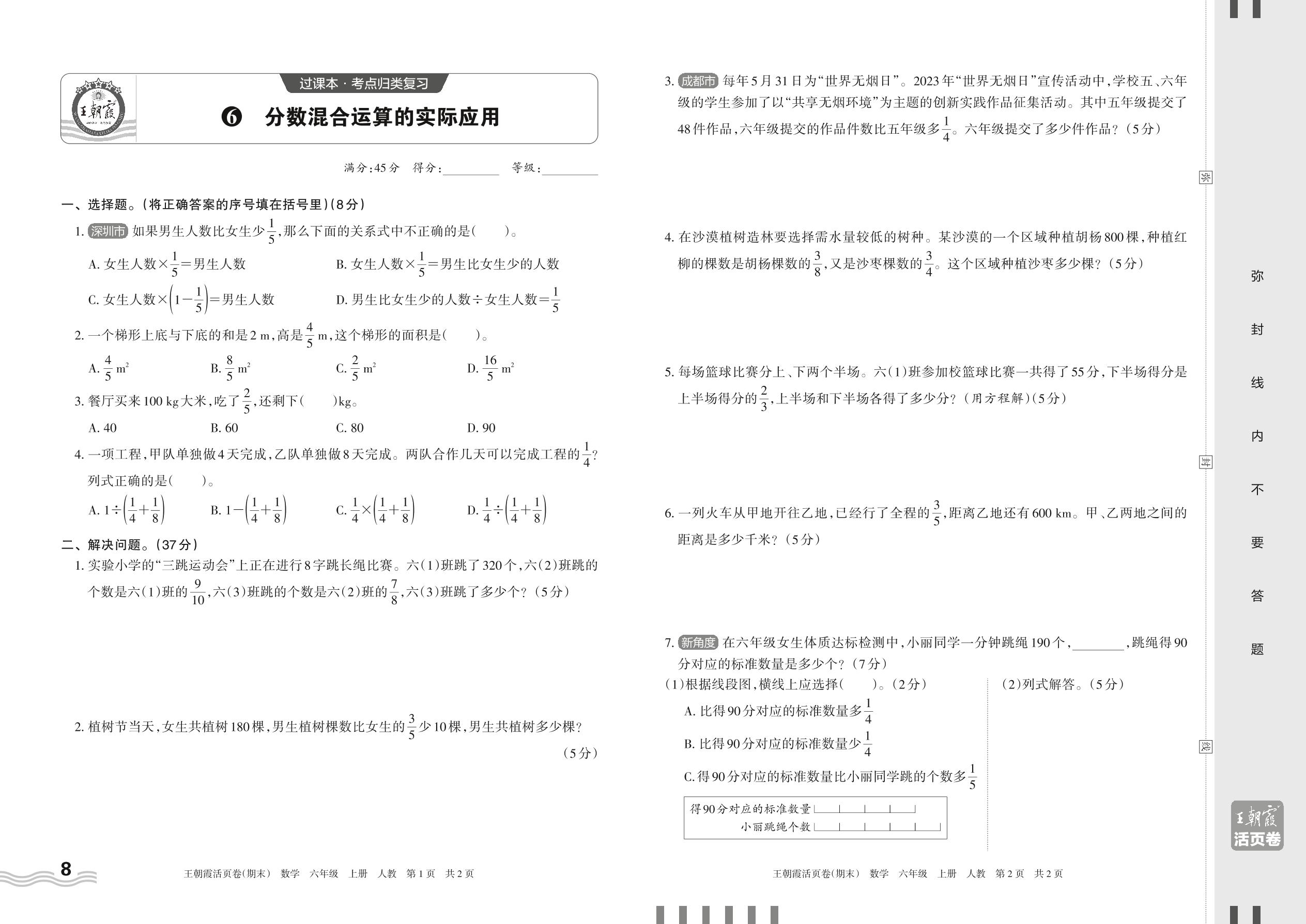2023上册六年级数学人教版 6 分数混合运算的实际应用