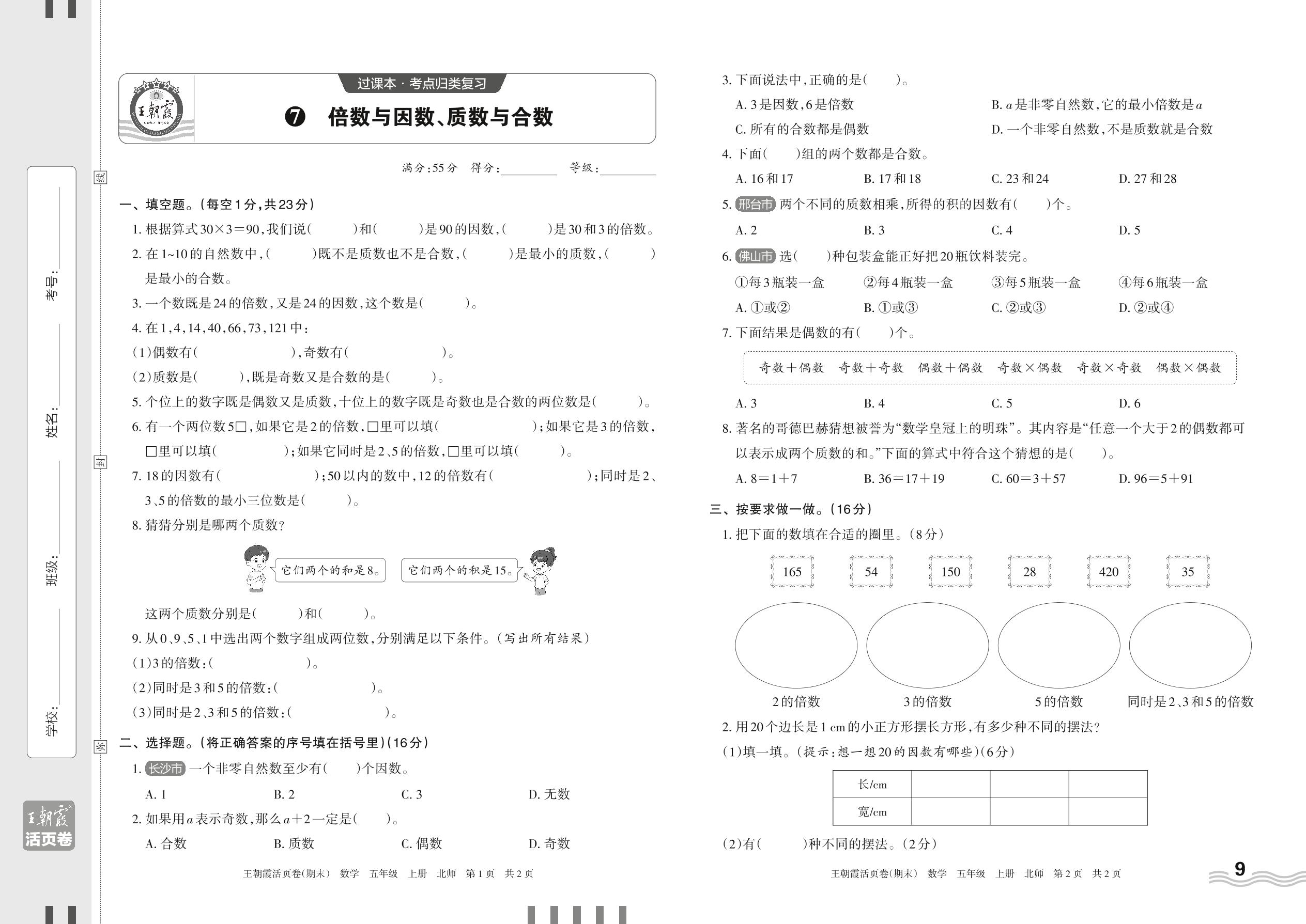 2023上册五年级数学北师版 7 倍数与因数、质数与合数