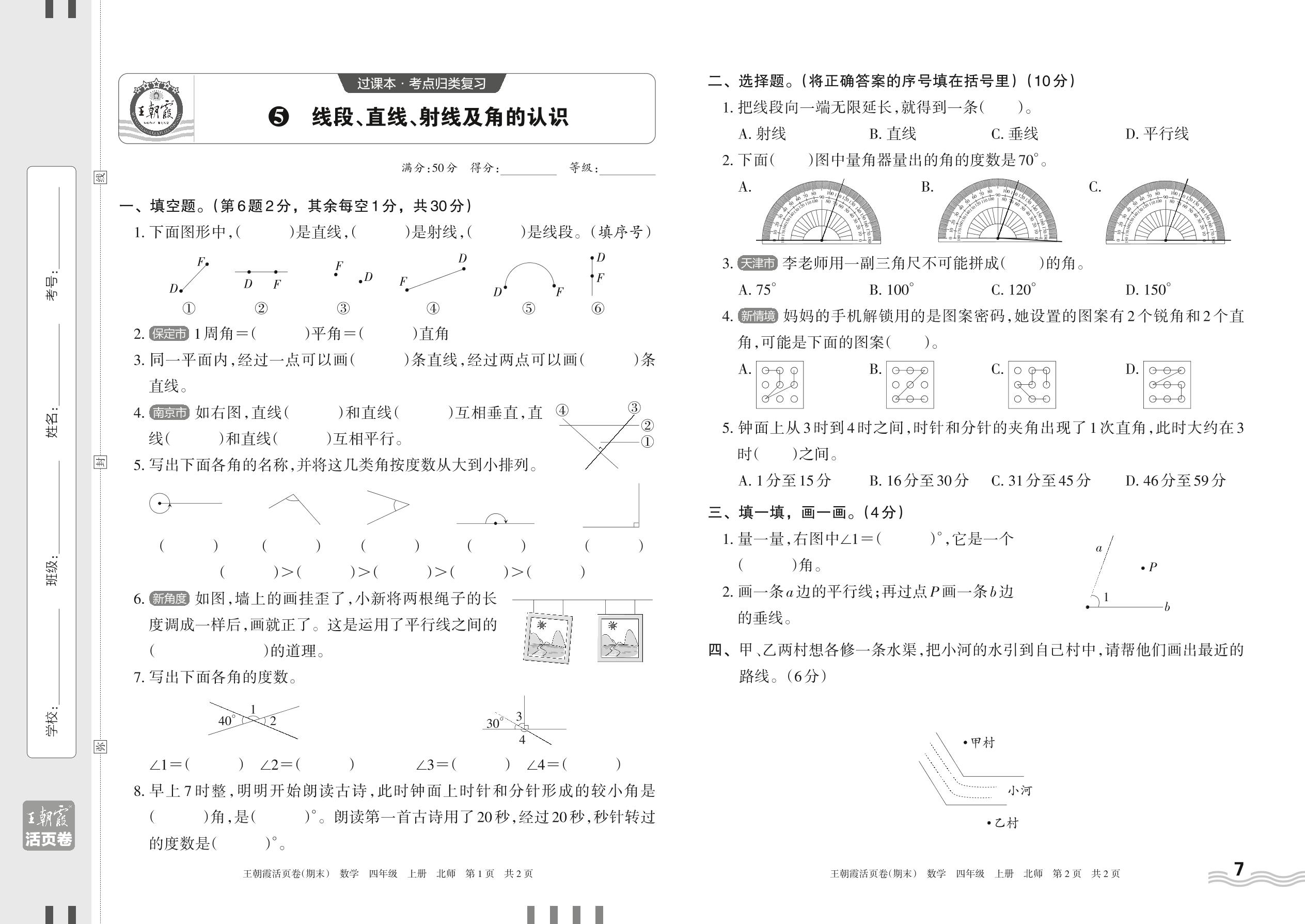 2023上册四年级数学北师版 5 线段、直线、射线及角的认识