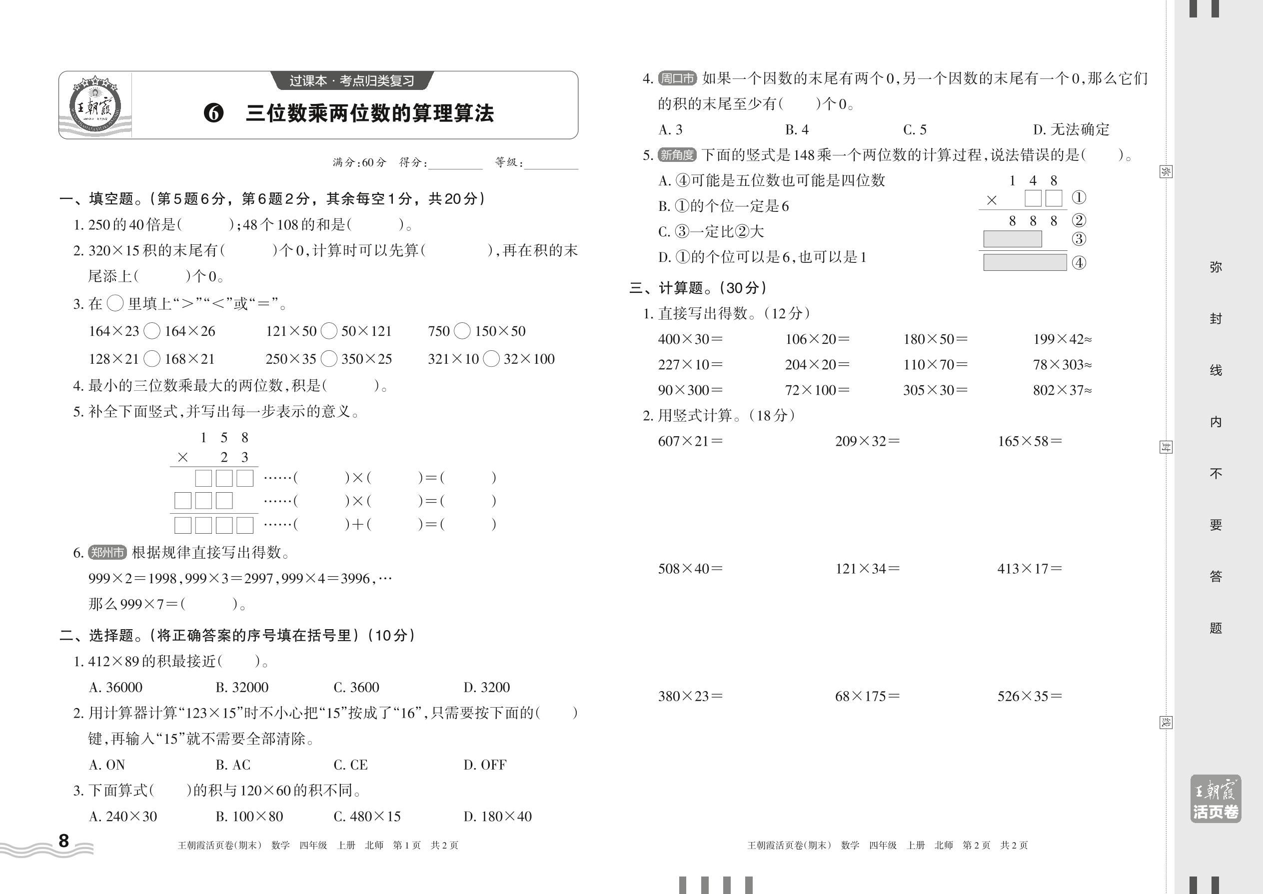 2023上册四年级数学北师版 6 三位数乘两位数的算理算法