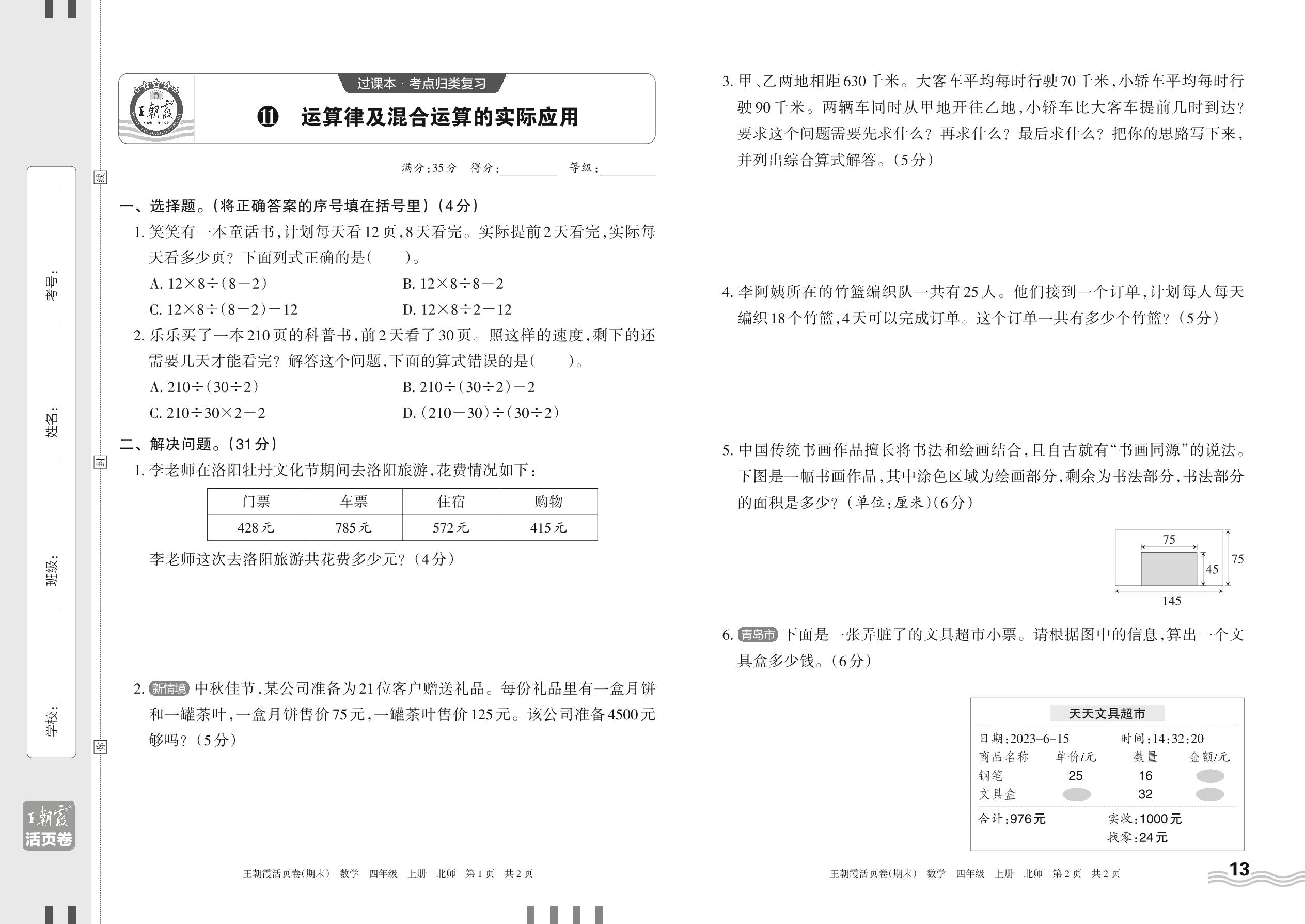 2023上册四年级数学北师版 11 运算律及混合运算的实际应用