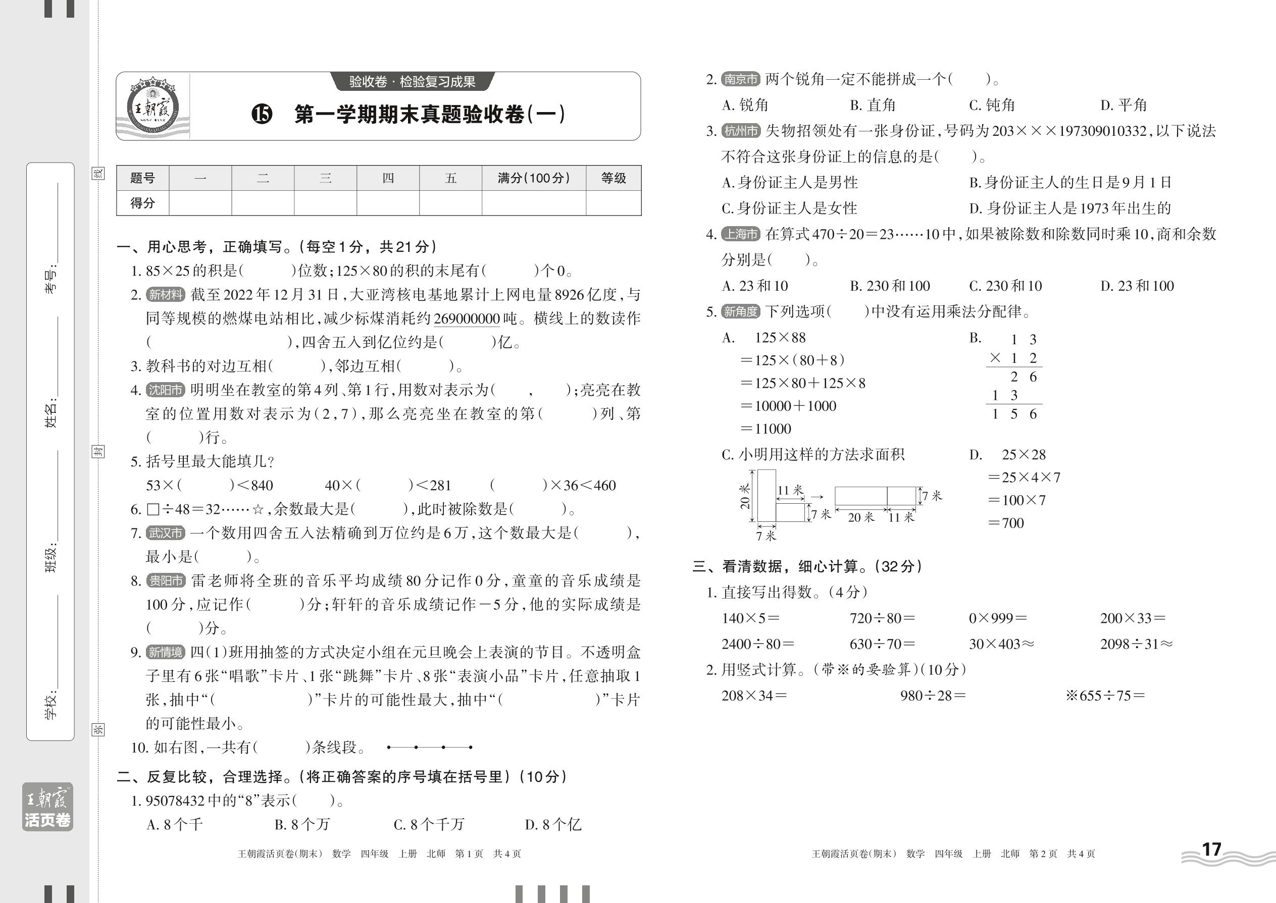 2023上册四年级数学北师版 15 第一学期期末真题验收卷(一)