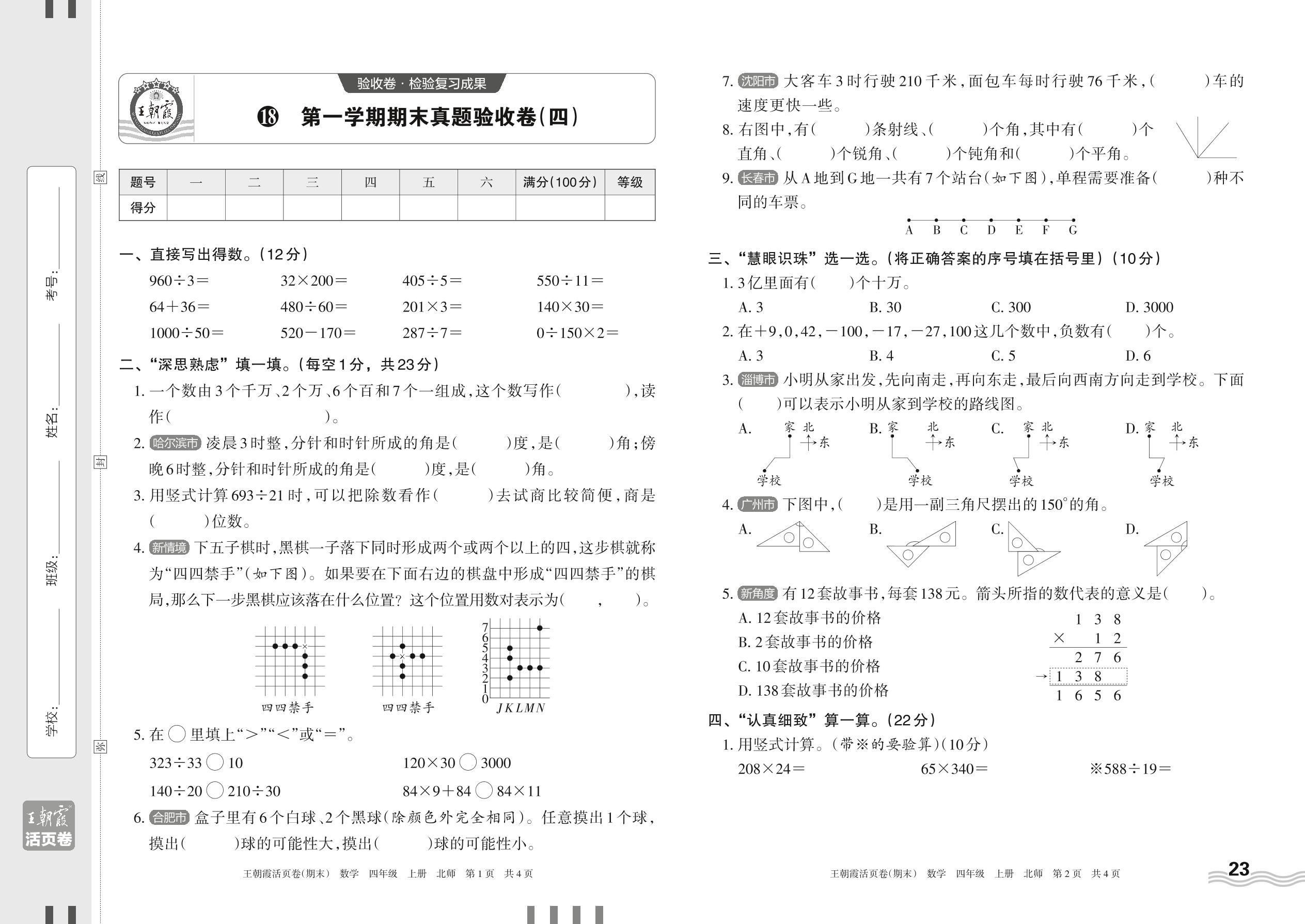 2023上册四年级数学北师版 18 第一学期期末真题验收卷(四)