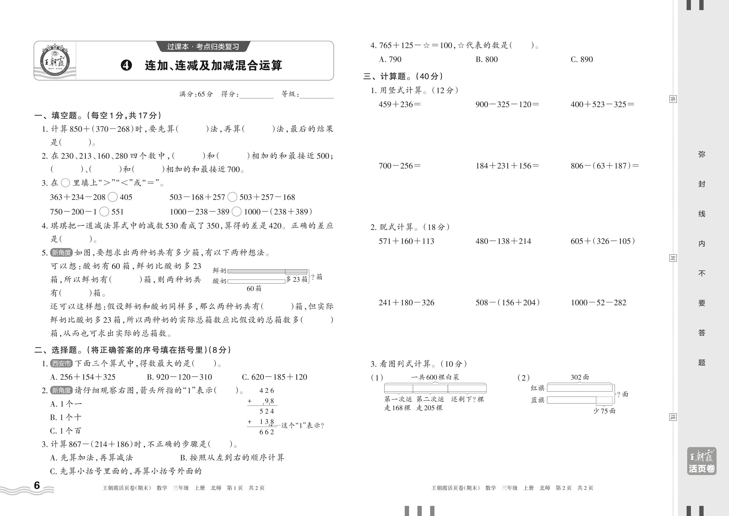 2023上册三年级数学北师版 4 连加、连减及加减混合运算