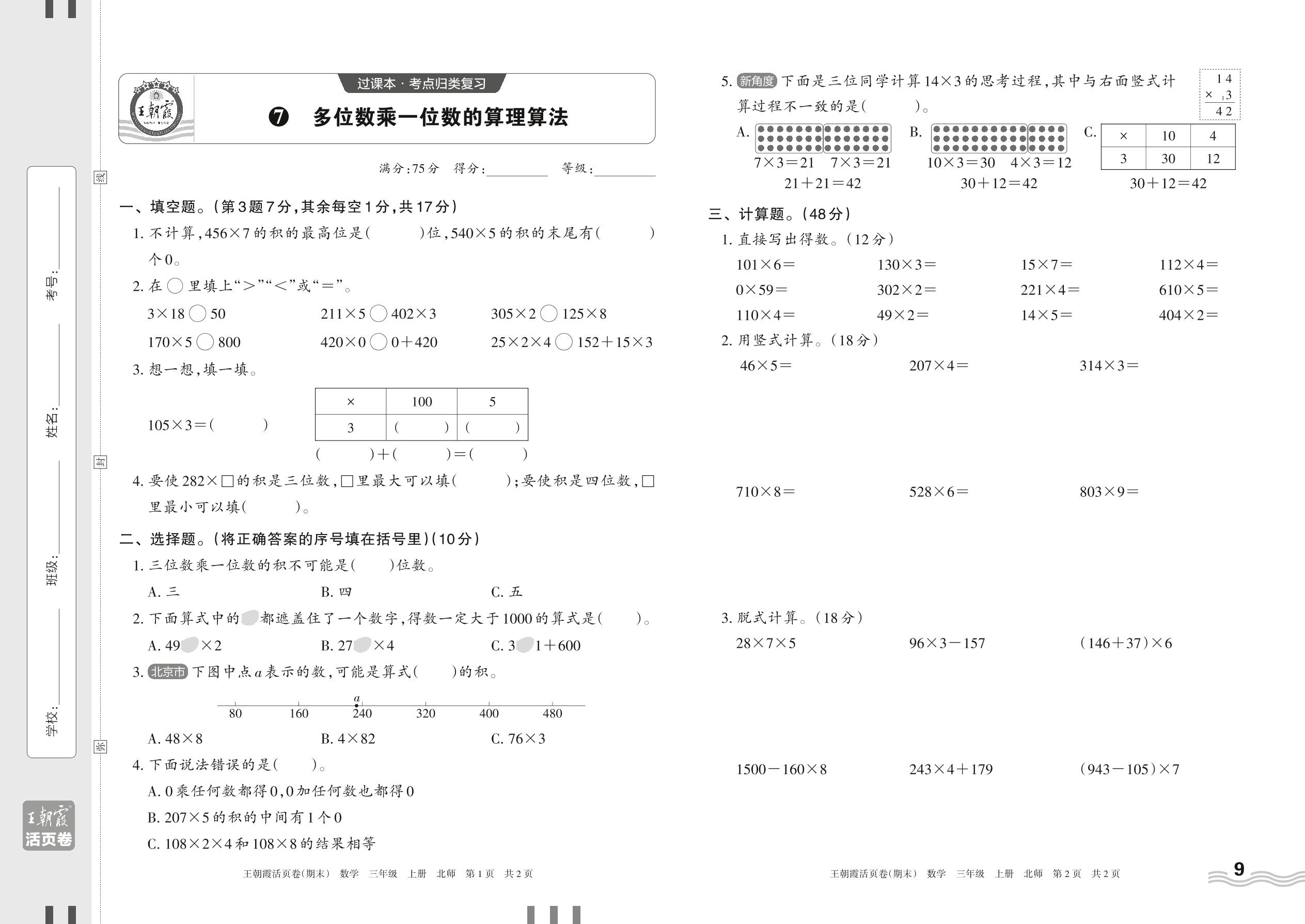 2023上册三年级数学北师版 7 多位数乘一位数的算理算法